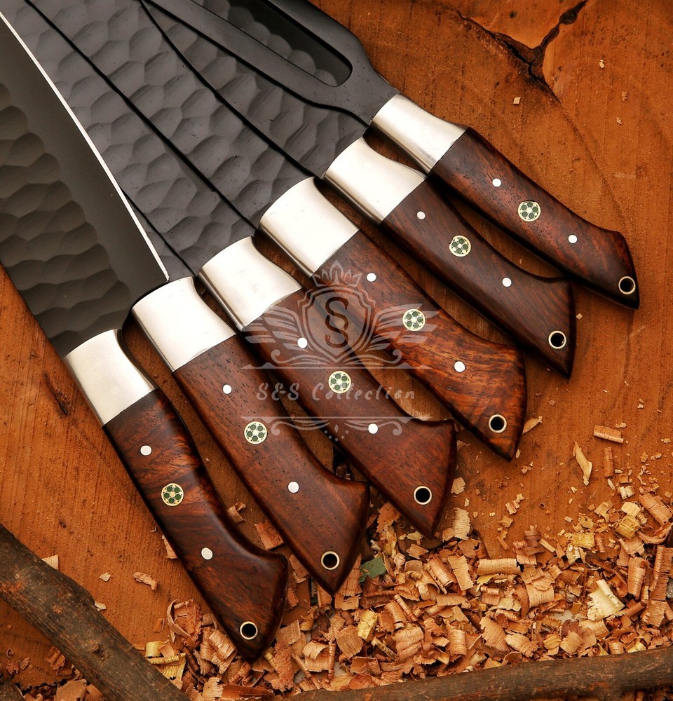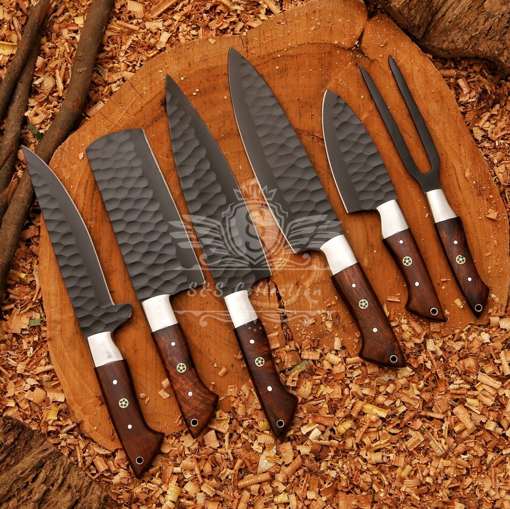 Overall PC : 6 Pcs Left to Right Knife 1 :OVERALL 13' Blade 8.5" Inches - Handle 4.5" Inches Cleaver Knife 2 : OVERALL 13' Blade 8.5" Inches - Handle4. 5" Inches Knife 3 : OVERALL 12' Blade 7.5" Inches - Handle 4.5" Inches Knife 4 : OVERALL 11' Blade 6.5" Inches - Handle 4.5" Inches Knife 5: OVERALL 8' Blade 5.5" Inches - Handle 4.5" Inches Carving Fork: OVERALL 9' Blade 4.5" Inches-Handle4.5" Inches Sheath Included" Layers: 512 Hardness: 58-60 HRC
