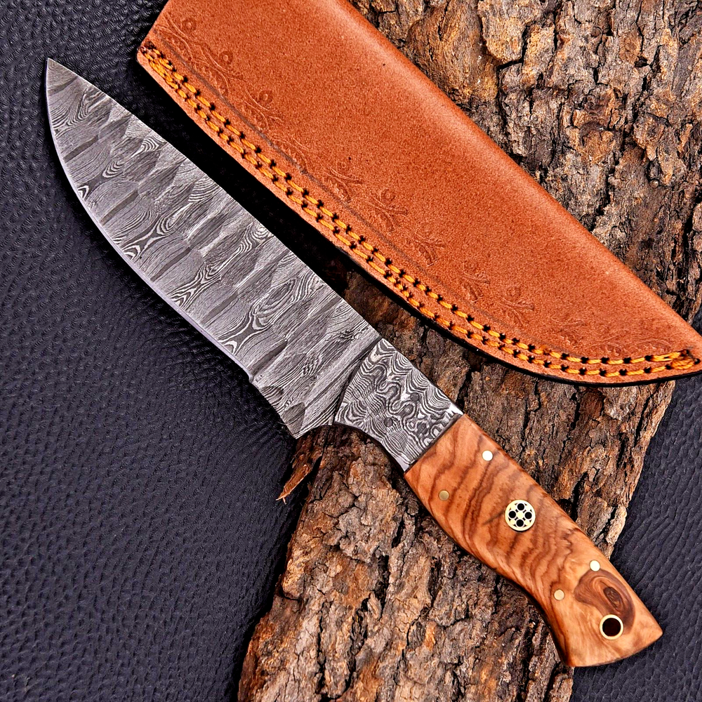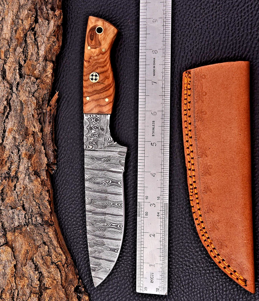 Dexterity: Ambidextrous Blade Material: Damascus Steel Blade Edge: VERY SHARP Type: Bowie Knife, Everyday Carry, Hunting, Survival, Throwing, SKINNER KNIFE, Damascus Knife, Skinning, Gift, EDC Knife Vintage: No Features: Sheath Included Blade Color: Gray Handmade: Yes Brand: M DAMASCUS Blade Type: Drop Point Handle Material: WOOD HANDLE Tang: Hidden Blade Length: 5" inches Original/Reproduction: Original