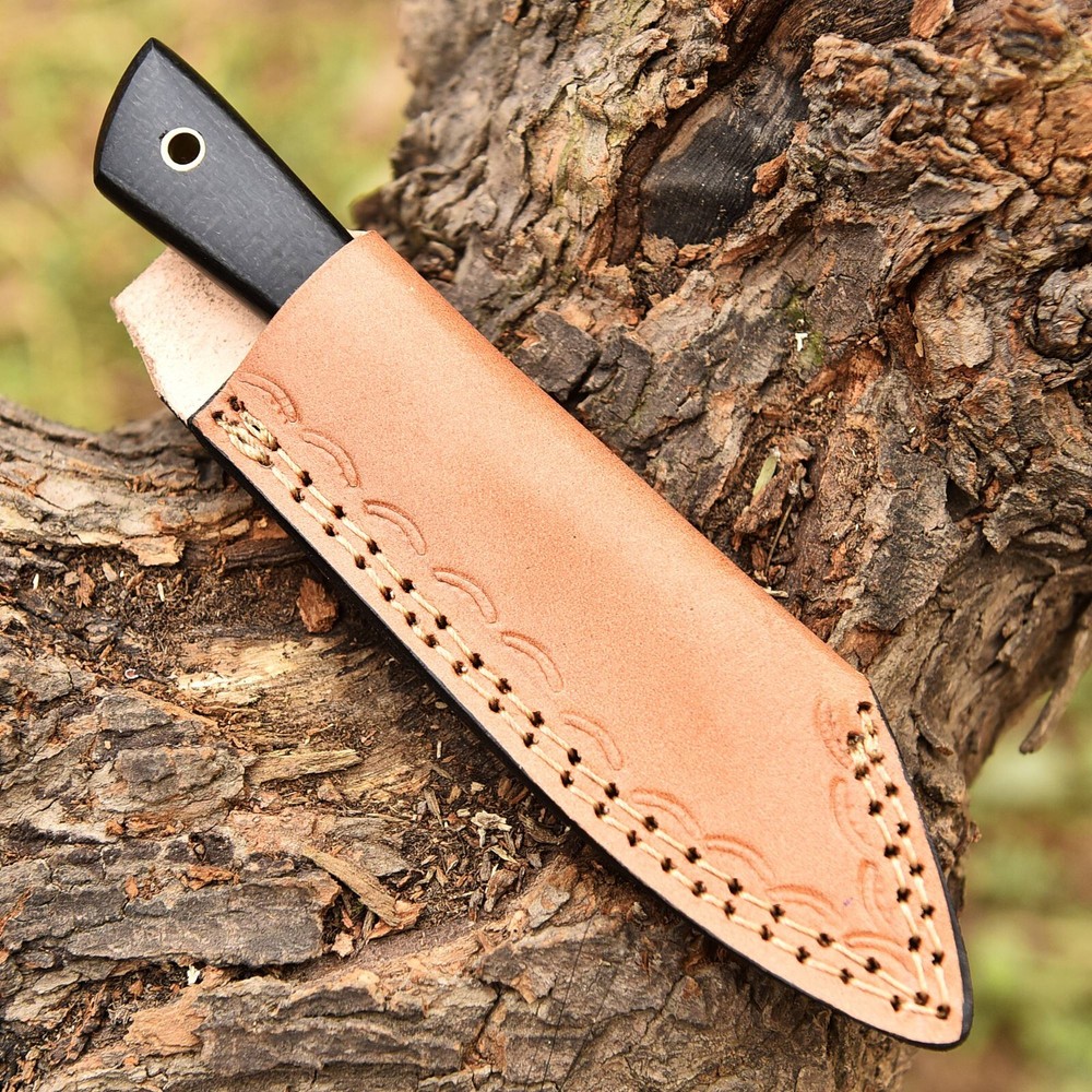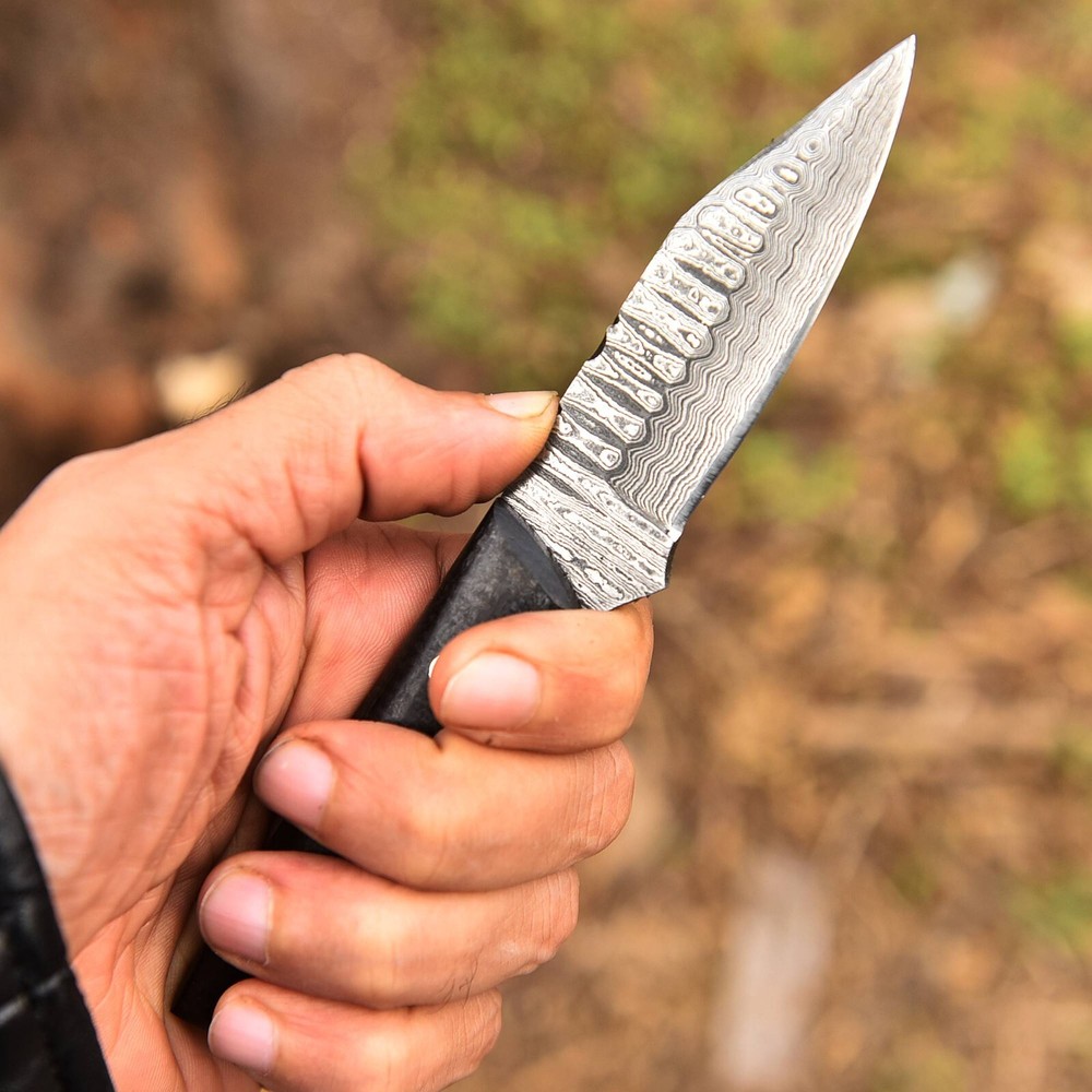 CUSTOM MADE HAND FORGED DAMASCUS STEEL BLADE HUNTING CAMPING SURVIVAL KNIFE Micarta Handle This superb design knife is hand forged. Blade of this knife has a nice file work and is made of 512 layers of 4340 stainless steel and 1075 high carbon steel and hardness 55-58 HRC . This robust knife is lab tested under intense conditions, the balance and shape of this knife ensures perfect grip. Overall Length: 7" Inches Blade Length: 3.6" Inches Handle Length: 3.6" Inches Damascus Design: Rain Drop Pattern Layers: 512 Package Includes: with Leather Sheath Warning: Keep fingers clear of blades. Store away from children.