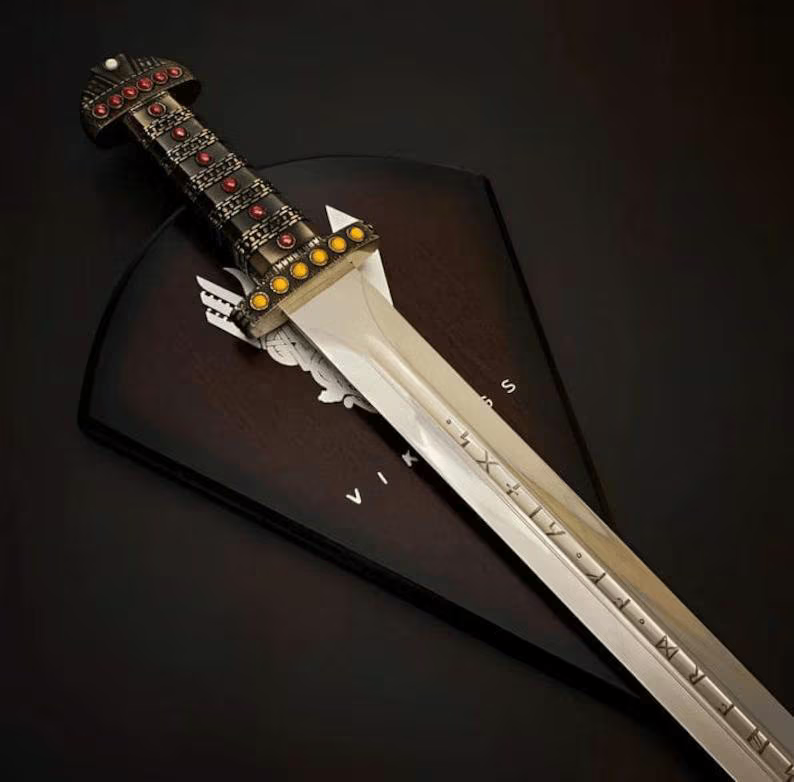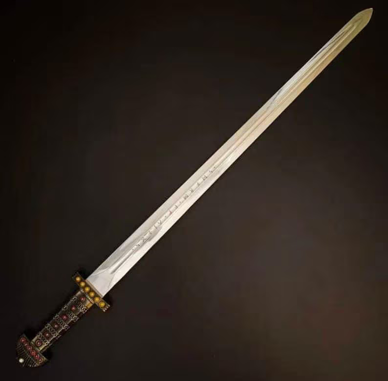 Overall Length: Approximately 36–37 inches Blade Length: Approximately 27–28 inches Handle Length: 9–10 inches Blade Material: Polished Stainless Steel, lightly sharpened (display grade) Handle Material: Solid Rosewood, wrapped for enhanced grip Guard & Pommel: Silver-tone metal with intricate Viking-style engravings This sword has a classic Viking-inspired design, with emphasis on craftsmanship for both aesthetics and utility, ideal for display purposes. The polished stainless steel blade provides a sleek and reflective surface, while the solid rosewood handle ensures comfort and a firm grip. The Viking-style engravings on the guard and pommel contribute to the sword's historical flair. Out-of-Stock Orders: In the event that an item is out of stock, your order will be dispatched from our South Asia warehouse to ensure timely delivery. You will be notified if this applies to your order.