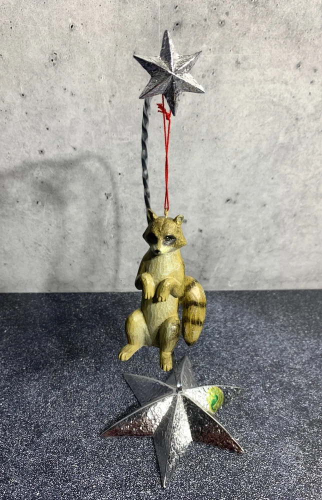 Hand-Painted 3.5in Cute Raccoon Christmas Tree Ornament for wolflend Theme