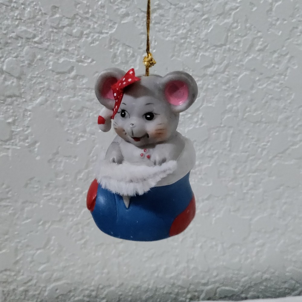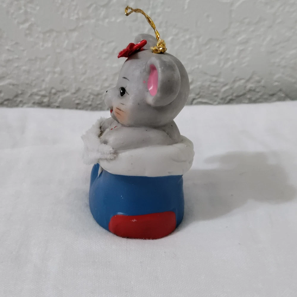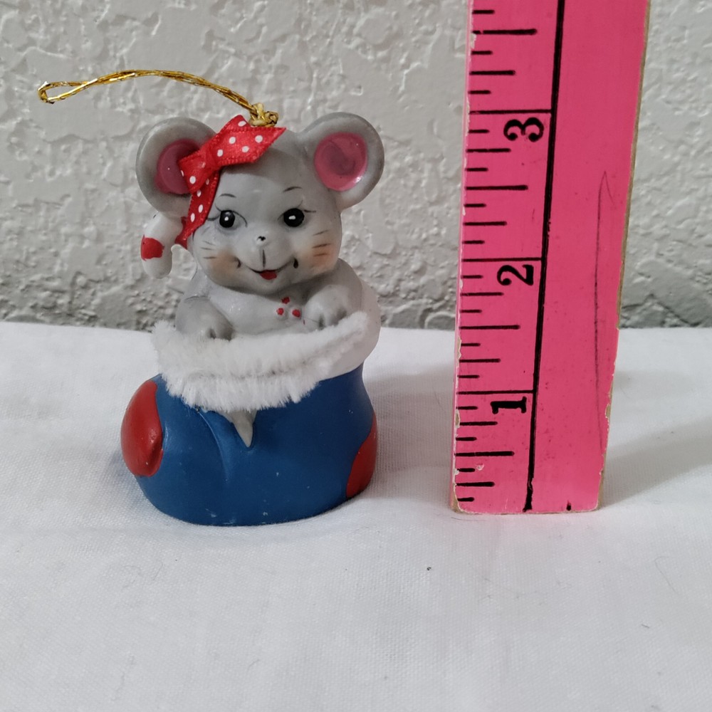 Giftco Bell Mouse 3" Tall Hand Painted Porcelain Bell Ornament Taiwan. There is wear and tear to ornament. See pictures for condition.