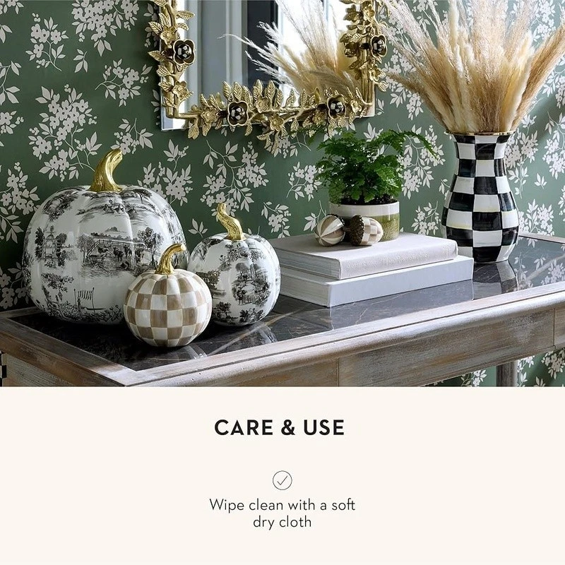 You may also like Grip Strengthener Kit Hand Exerciser Finger Training Stress Relief Ball Workout 15.79 USD 16.98 USD Free shipping 7% off Cast Iron Dutch Oven 7.3Qt Enameled Cookware Oven Safe Heat Retention Easy Clean 52.49 USD Free shipping Low Carb Peanut Butter Cups Dessert Treat 10 Ct Sugar Free Healthy Snack New 11.25 USD 11.84 USD Free shipping 5% off Floral Porcelain Cups & Saucers Set Vintage Style 6 Pieces Gift Boxed Tea Party 52.3 USD 56.24 USD Free shipping 7% off Durable Tool Bag Heavy Duty Organizer W/ Multiple Compartments Professionals New 45.19 USD 48.59 USD Free shipping 7% off Air Fryer Toaster Oven Combo 4 Slice Convection Cooking W/ Accessories New 74.94 USD 87.44 USD Free shipping 14% off TENS EMS Unit Muscle Stimulator Pain Relief 24 Modes Dual Channel Therapy Device 41.84 USD 44.99 USD Free shipping 7% off Reinforced Aluminum Nonstick Cookware Set 14 Piece Induction Safe Easy Clean New 83.11 USD 94.49 USD Free shipping 12% off Protein Bars Crunchy Peanut Butter Organic Oats Energy Snack Non-GMO 15 Pack New 25.28 USD 27.18 USD Free shipping 7% off 5-Cup Coffee Maker Removable Filter Basket Auto Keep Warm Simple Operation New 20.46 USD 22.0 USD Free shipping 7% off Multi-Purpose Measuring Pitcher - 64oz., Translucent 15.79 USD 16.98 USD Free shipping 7% off Durable Tool Hook Set J Hooks U Hooks V Hooks Shed Storage Organization New 17.58 USD 32.28 USD Free shipping 7% off About this item HAND-PAINTED DECORATIVE PUMPKIN: Whether it’s spooky or harvest season, this resin pumpkin decoration makes darling fall decor for the mantel or kitchen table. Display one alone, or decorate with a whole patch of MacKenzie-Childs resin pumpkins. ELEGANT HALLOWEEN DECOR: Our Mocha Check Mini Pumpkin is an extraordinary pick from our patch. It features a hand-painted pattern of brown-and-white color-dragged checks and is topped with a gold stem for extra flair. HOME & SEASONAL ACCESSORIES: At MacKenzie-Childs, we believe that everyday items can be made extraordinary. From the table to the mantel, you can enjoy the magic of MacKenzie-Childs anywhere. We offer centerpieces, figurines, fall decorations, and more. THE PERFECT GIFT: A MacKenzie-Childs piece is much more than a gift—it’s the beginning of a lifelong collection. Our Halloween and fall decor items make amazing wedding and housewarming gifts. Welcome to the MacKenzie-Childs family! : MacKenzie-Childs was born of our love of home and our commitment to fresh, innovative design. Each piece holds the surprise and joy of the unexpected. Color: Mocha Check Brand: Theme: Horror, Home Decor Material: Resin Style: Cottage 60 Pack Mini Aluminum Foil Loaf Pans W/ Lids Spoons Perfect Baking Parties New 28.78 USD Free shipping Windproof Compact Golf Umbrella Auto Open Close Inverted Design Travel Use 26.77 USD 28.78 USD Free shipping 7% off Washable Rectangular Dog Bed Non-Slip Comfy Pet Bed W/ Removable Cover Crate Bed 38.08 USD 40.95 USD Free shipping 7% off High Protein Dog Food Lamb Active Dogs Joint Support Probiotics Crunchy Kibble 30.49 USD 32.78 USD Free shipping 7% off Outdoor Round Dog Cat Bed Water Resistant Zippered Slipcover Machine Washable US 67.56 USD 72.65 USD Free shipping 7% off Modern Stone Base Coffee Table Compact Accent End Table Portable Design New 58.12 USD 62.49 USD Free shipping 7% off Porcelain Ramekins Set of 6 Baking Souffle Desserts Dipping Bowls Oven Safe New 31.23 USD 33.58 USD Free shipping 7% off 3 Piece Nonstick Bakeware Set Oven Safe Ceramic Easy Cleanup Kitchen Cooking New 63.57 USD 68.36 USD Free shipping 7% off Large Windproof Golf Umbrella Double Canopy Auto Open Heavy Duty Golfing Rain US 35.69 USD 38.38 USD Free shipping 7% off Dual-Sided Dog Bed Mat Durable Lightweight Easy Clean Ideal Small Dogs New 16.98 USD Free shipping Engraved Wedding Cake Knife & Server Set 4 Pieces Gift Special Occasions New 26.77 USD 28.78 USD Free shipping 7% off Dry Dog Food Chicken Barley Brown Rice Kibble Adult All Breeds Nutrition New 29.27 USD 31.47 USD Free shipping 7% off