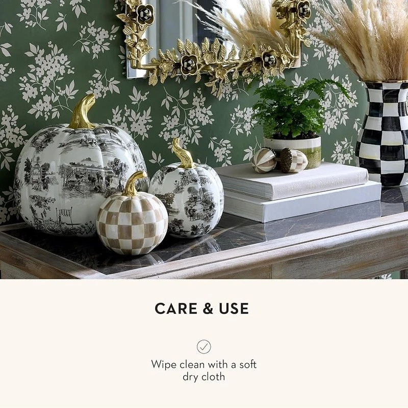 Wet Dog Food Chopped Ground Dinner Beef Canned Adult Nutrition 4 Pack 22oz Cans 15.68 USD 16.86 USD Free shipping 7% off Professional Handheld Seed Spreader Bag Seeder 25lbs Capacity W/ Waterproof Bag 48.52 USD 52.17 USD Free shipping 7% off Christmas Window Silhouette Lights 4 Pack Snowflake Snowman Deer Bell Decor New 51.97 USD 55.88 USD Free shipping 7% off Iridescent Glass Beverage Dispenser 1.5 Gallon Clear Drink Server W/ Lid Spigot 28.41 USD 30.55 USD Free shipping 7% off 3 in 1 Pasta Maker Attachment Kitchen Stand Mixer Roller Cutter Set Red New 51.88 USD 55.79 USD Free shipping 7% off 4-Person Clip & Camping Dome Tent Outdoor Portable Hiking Lightweight HOT 61.4 USD 66.02 USD Free shipping 7% off Durable 5.70-8 8-Ply Trailer Tire Non-Radial Highway Trailer Replacement Tire US 60.68 USD 65.25 USD Free shipping 7% off Large Jerky Gun W/ Stainless Steel Trigger 3 Attachments & 5 Spice Packets New 23.72 USD 25.5 USD Free shipping 7% off Cozy Plush Throw Blanket Multi Color Leopard Machine Washable Eco Friendly New 11.61 USD 12.48 USD Free shipping 7% off Durable Aluminum RV Stabilizer Jacks Set Adjustable Height Travel Trailers New 42.3 USD 45.48 USD Free shipping 7% off Acrylic Lying Deer Christmas Tabletop Decor Holiday Centerpiece Elegant Design 31.35 USD 33.71 USD Free shipping 7% off Musical Nutcracker Snow Globe Clara Christmas Decoration Plays Nutcracker Suite 48.34 USD 51.98 USD Free shipping 7% off About this item HAND-PAINTED DECORATIVE RESIN PUMPKIN: Whether it’s spooky or harvest season, this pumpkin decoration makes darling fall decor for the mantel or kitchen table. Display one alone, or decorate with a patch of MacKenzie-Childs resin pumpkins. ELEGANT HALLOWEEN DECOR: Our Royal Toile Small Resin Pumpkin is an elegant pick from our patch. It features a royal-blue toile pattern of our upstate New York estate and is topped with a gold-leaf pumpkin stem for extra style. HOME & SEASONAL ACCESSORIES: At MacKenzie-Childs, we believe that everyday items can be made extraordinary. From the dinner table to the mantel, you can enjoy the magic of MacKenzie-Childs anywhere. We offer table Halloween decor, autumn decor, and more. THE PERFECT GIFT: A MacKenzie-Childs piece is much more than a gift—it’s the beginning of a lifelong collection. Our Halloween and fall decor items make amazing wedding and housewarming gifts. Welcome to the MacKenzie-Childs family! : MacKenzie-Childs was born of our love of home and our commitment to fresh, innovative design. Each piece holds the surprise and joy of the unexpected. Color: Royal Brand: Theme: Seasonal, Home Decor, Nature And Outdoors, Halloween Material: Resin Style: American You may also like LED Light Up Spiral Christmas Trees Set of 2 Indoor Outdoor 8 Function New 43.83 USD 47.13 USD Free shipping 7% off LED Christmas Tree Lights 25ft Flagpole Outdoor Decor 8 Modes 1450 Lights New 78.57 USD 84.48 USD Free shipping 7% off 35in Snowy Pine Tree Rustic Tabletop Decorative Tree Indoor Porch Patio New 45.87 USD 49.32 USD Free shipping 7% off Prelit Artificial Christmas Tree 35 Clear Lights Medium Profile Indoor Use 57.79 USD 62.14 USD Free shipping 7% off Handwoven Water Hyacinth Christmas Tree Collar Cord Management Rustic Decor 28 48.34 USD 51.98 USD Free shipping 7% off Prelit 4ft Christmas Tree LED Lights Fire Resistant Metal Base Easy Assemble New 58.01 USD 62.38 USD Free shipping 7% off High Quality Christmas Tree W/ Metal Branches & PVC Leaves Stable Decoration New 43.51 USD 46.78 USD Free shipping 7% off 6ft Pop Up Tinsel Christmas Tree W/ Star Topper 40 Balls & 8 Light Modes New 43.5 USD 46.77 USD Free shipping 7% off Hanging Christmas Tree 5ft 28 Colorful Balls 144 LED Lights Indoor Outdoor New 48.34 USD 51.98 USD Free shipping 7% off Large Ceramic Christmas Tree W/ Timer LED Light Tabletop Holiday Decoration New 48.34 USD 51.98 USD Free shipping 7% off Pre-lit Christmas Tree Set 2-Pack Battery Operated Timer Indoor Outdoor Decor US 72.52 USD 77.98 USD Free shipping 7% off 4ft Prelit Christmas Tree W/ 50 Warm White Lights Artificial Holiday Decor New 43.5 USD 46.77 USD Free shipping 7% off