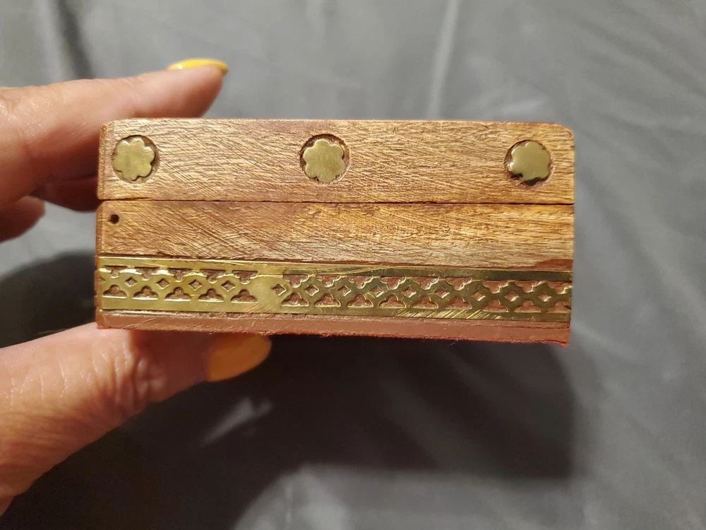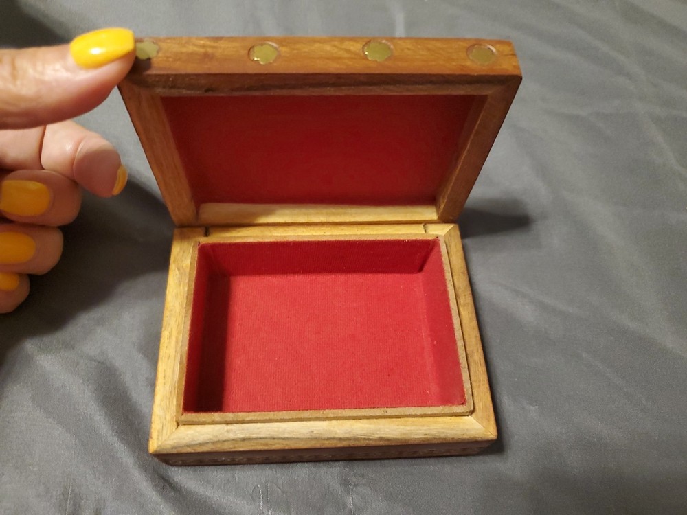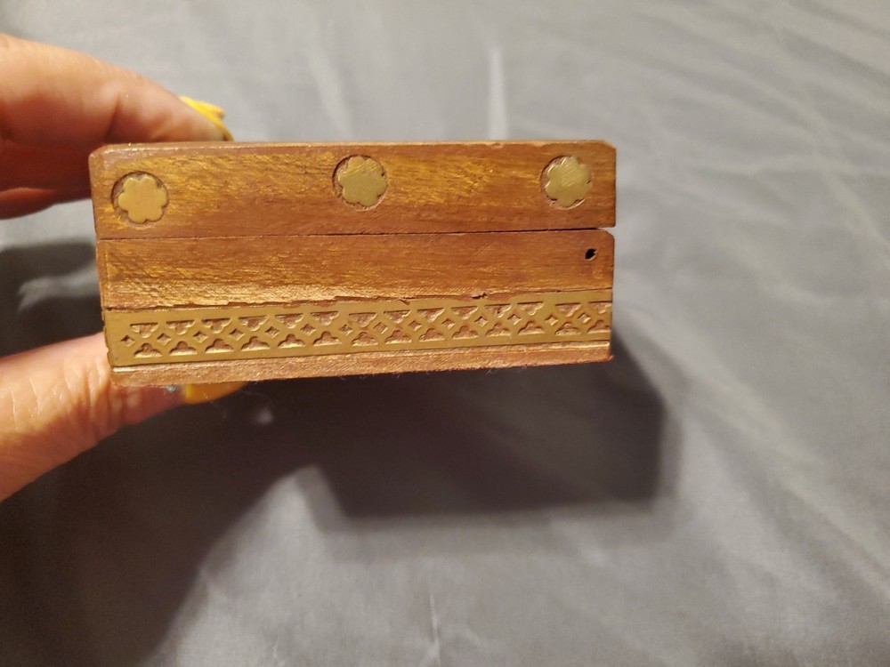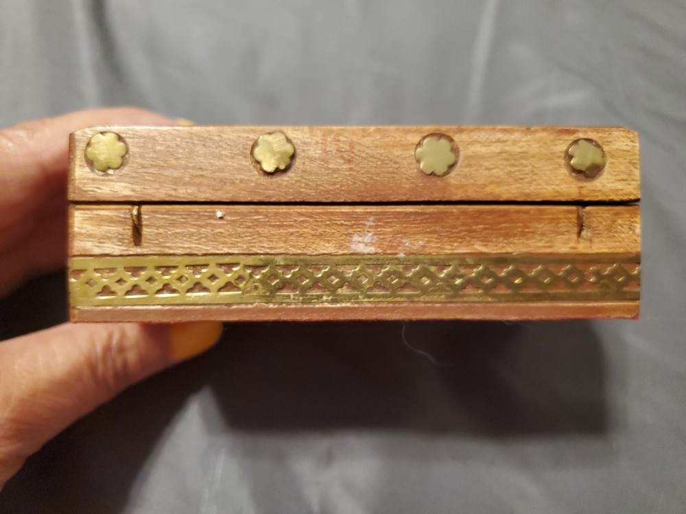 Vintage Brass-Inlaid Wooden Jewelry Box 9.25x4.5 Inches for Trinkets