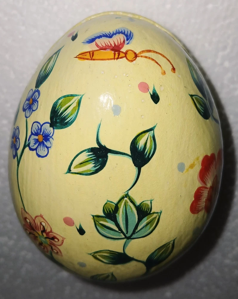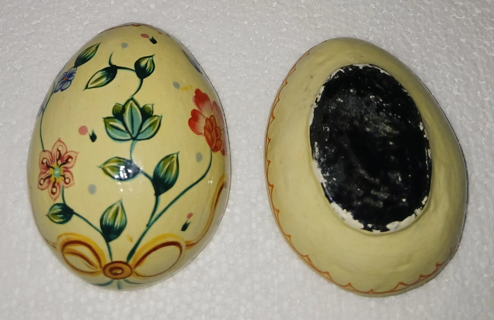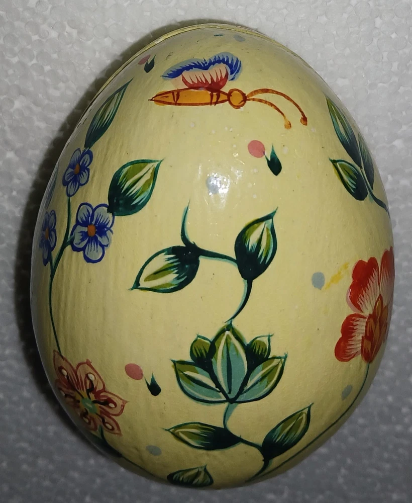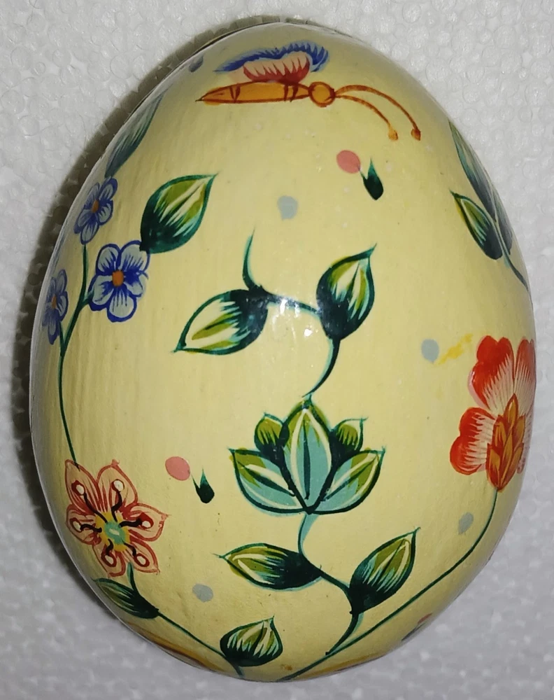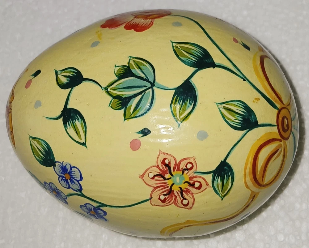 KASHMIR INDIA TRINKET BOX, egg shaped 1.) PLEASE CHECK THE EXPECTED DELIVERY DATES 2.) PLEASE BE PATIENT, there's a longer handling time on my auctions, but I try to ship faster... I work around chemo, dialysis and I'm mostly paralyzed so I rely on family members in their spare time for all of my shipping+ 3.) KASHMIR INDIA LIDDED TRINKET BOX 4.) MEASURES 3" LENGTH X 2-1/4" WIDE X 2-1/4" TALL 5.) HAND PAINTED AND LACQUERED 6.) EXCELLENT CONDITION WITH VERY BRIGHT VIBRANT COLORS 7.) I DO COMBINE SHIPPING AND ANY OVERPAID AMOUNT IS REFUNDED ***