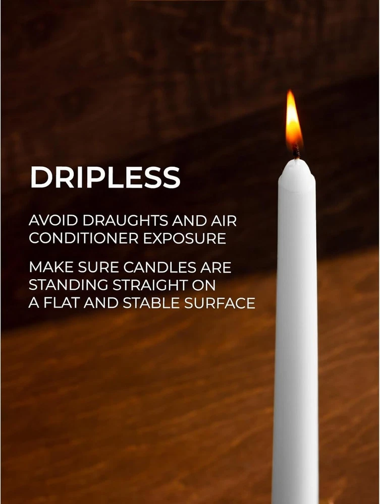 Hand-Poured Dripless White Taper Candles 12-Inch - Perfect for Weddings
