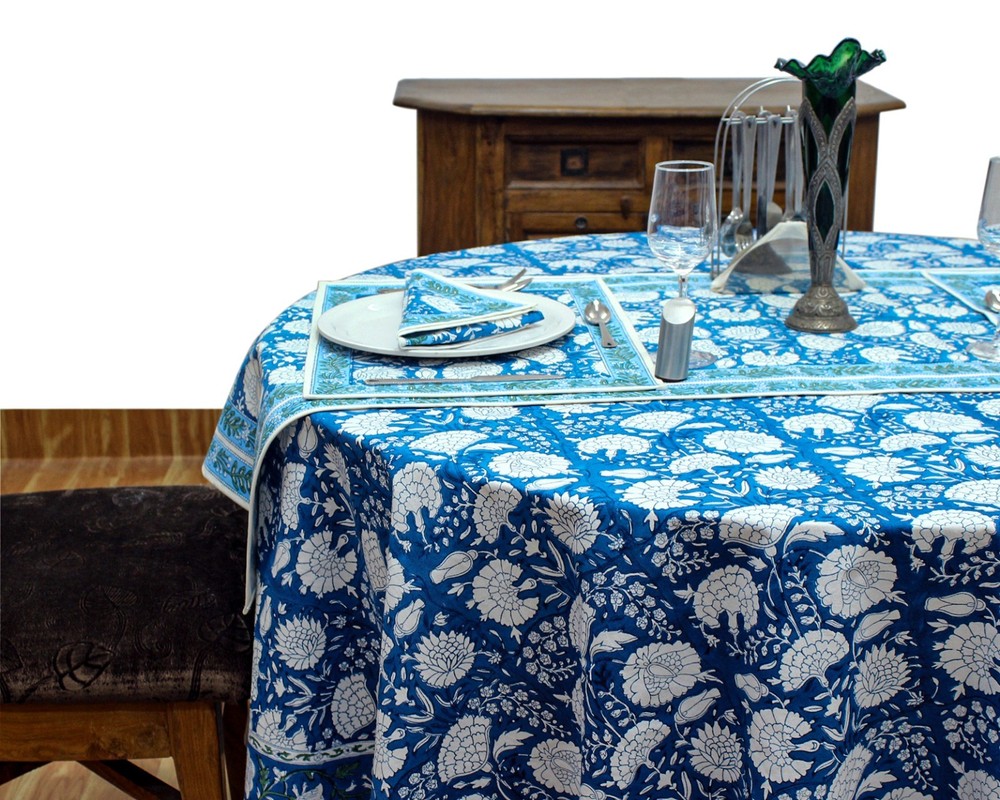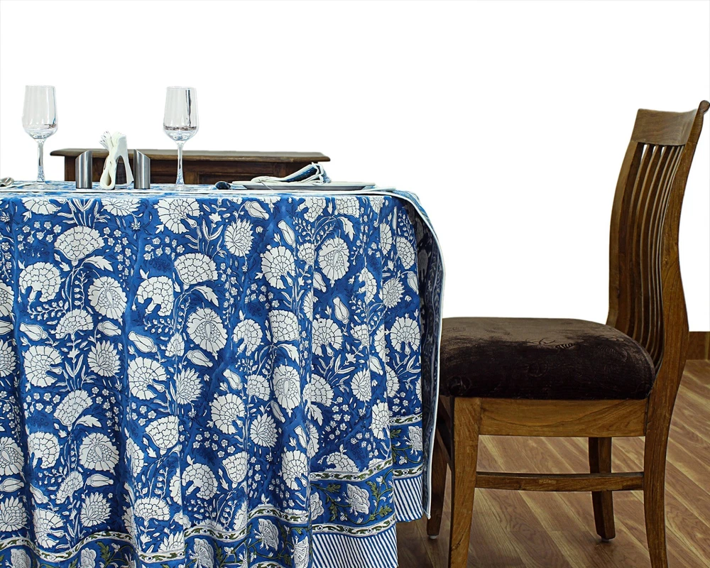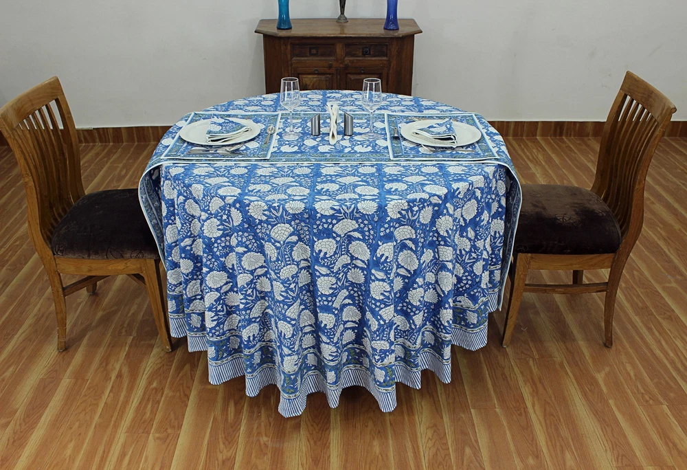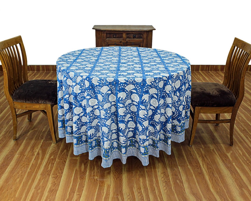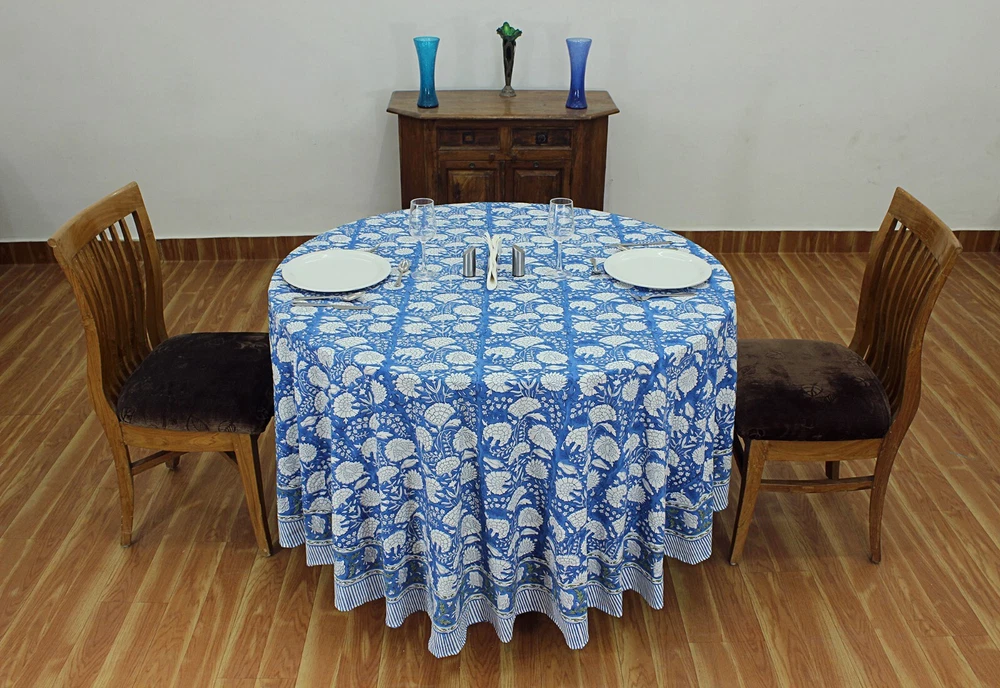 Handblock Printed Round Cotton Tablecloth for Dining and Home Decor