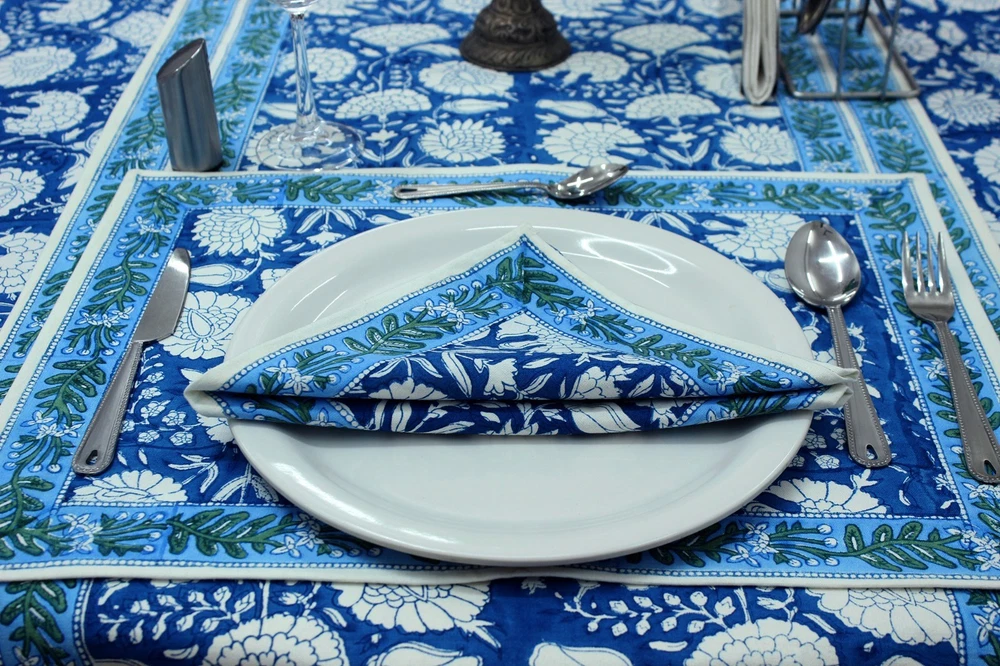 WELCOME Beautifully handcrafted Wooden Block Printed Cotton Table Cover, created by local artisans of India,designed using classic, ethnic and royal prints as inspirations. Our block printed textiles are not only eco-friendly but also sustainable made using finest quality cottons and best quality organic printing colors. This Table Cover is the perfect go-to shot for accessorizing your table. It stands out as a statement piece, delighting the surrounding space with fine aesthetics. To check our more of our product range, please visit our shop link - https://www.ebay.com/str/homespuncraft Product Details - Design: Floral, Royal & Classic Technique / Print: Wooden Block Printedwith Hands Material / Yarn Type: 100% Natural Cotton (Eco-Friendly) Color : Blue and White Dimensions/Sizes Available - Shape: Rectangle/Square 4 Seater: 60 X 60 inches (150 X150 Cm.) 4 Seater: 72 X 72 inches (180 X180 Cm.) 6 Seater: 60 X 90 Inches (150 X 225 Cm.) 6 seater: 48 x 102 Inches (120 X 260 Cm.) 8 Seater: 90 X 90 Inches (225 X 225 Cm.) 8 Seater: 72 X 108 Inches (180 X 275 Cm.) 8 Seater: 110 X 110 Inches (280 X 280 Cm.) 10 Seater: 72 X 118 Inches(180 X 300 Cm.) 12 Seater: 72 X 135 Inches (180 X 345 Cm.) 12 Seater: 72 X 140 Inches (180 X 355 Cm.) 12 Seater: 80 X 120 Inches (200 X 305 Cm.) 14 Seater: 72 X 160 Inches (180 X 405 Cm.) 16 Seater: 72 X 180 Inches (180 X 460 Cm.) 16 Seater: 72 X 190 Inches (180 X 480 Cm.) Shape: Round 4 Seater round: 60 X 60 Inches Round (150 X 150 Cm. Round) 4 Seater round: 72 X 72 Inches Round (180 X 180 Cm. Round) 6 Seater round: 90 x 90 Inches Round (225 x 225 Cm. Round) 8 Seater round: 110 x 110 Inches Round (280 x 280 Cm. Round) Table Runner - Wide - 20 Inches for all sizes (50 Cm. for all sizes) Length - Same length as the length of the table cover selected For Example, for a 72 x 140 Inches table cover order, the runner size would be 20 x 140 Inches. For a 60 x 90 Inches table cover order, the runner size would be 20 x 90 Inches and so on… Napkins: 16 X 16 Inches (40 X 40 Cm.) Table Mats: 13 x 18 Inches (35 x 45 Cm.) Number of Napkins and Table Mats shall be same as per the number of seater ordered. For Example, for a 4 seatertable cover ordered, it would be a set of 4 napkins and 4 table mats. For a 6 seatertable cover ordered, it would be a set of 6 napkins and 6 table mats and so on… Wash & Care Recommendations Wash Separately Preferably If Machine wash: Gentle cycle at 30°C If Hand wash: In Cold Water with mild or organic liquid detergents and air dry for longer durability and colour vibrancy Tumble dry: Low setting Iron: Low heat setting //Do not Soak. Do not use harsh detergents. Do not bleach. This Hand Block Printed Cotton Table Cover can be used for: Dining Table ,Coffee Table , Centre Table , etc NOTE-1 - All our textiles are handmade and are worked on by multiple artisans and the product goes through multiple hand-processes. Hence, there could be a very little variation than the actual look from the photos, which indeed is the characteristic of this handmade textile giving it an authentic handmadelook. NOTE-2 - Actual colors may slightly vary from the colors shown in the pictures due to different monitor screen settings, photography setup with natural lights and the nature of the product, being 100% hand made. NOTE-3 - Also please note that as per the policy mentioned on Ebay on the product page,any import duty, taxes occurred in the client's country will be borne by the client. Normally it does not occur. Thank You very much for visiting our store.