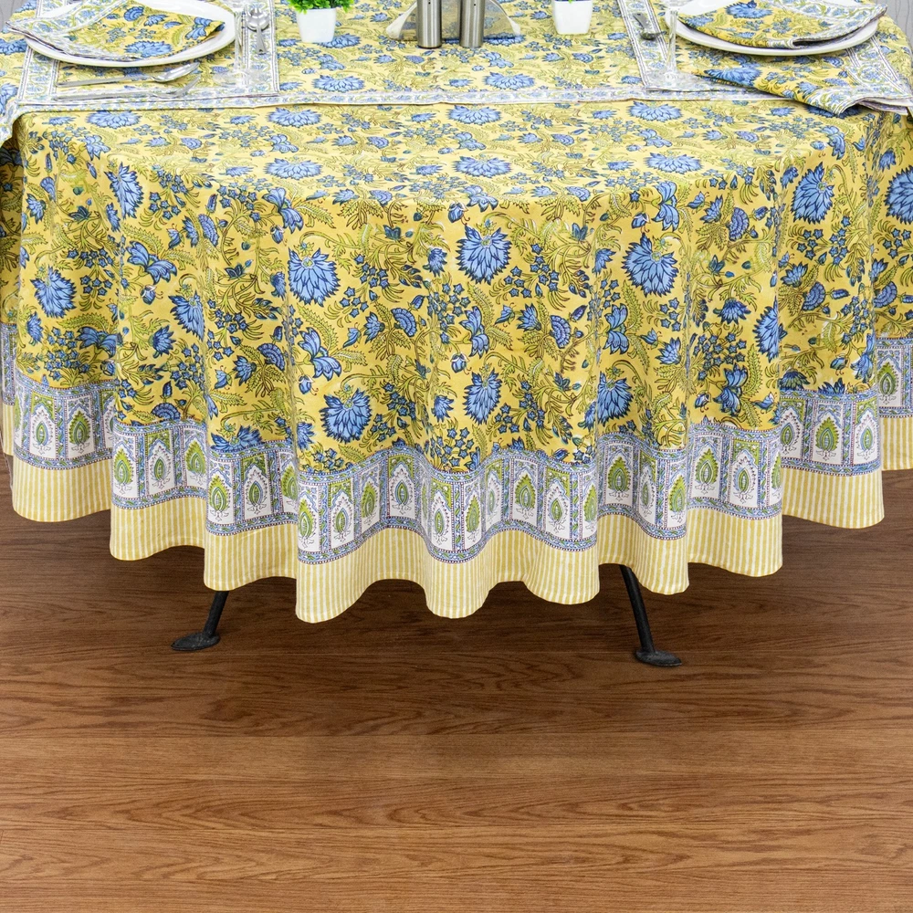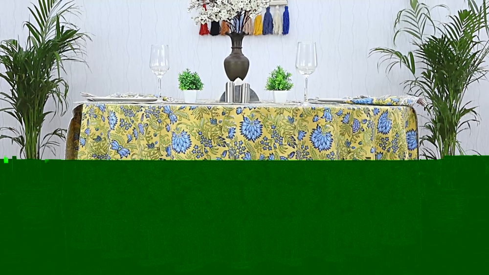 WELCOME Beautifully handcrafted Wooden Block Printed Cotton Table Cover, created by local artisans of India,designed using classic, ethnic and royal prints as inspirations. Our block printed textiles are not only eco-friendly but also sustainable made using finest quality cottons and best quality organic printing colors. This Table Cover is the perfect go-to shot for accessorizing your table. It stands out as a statement piece, delighting the surrounding space with fine aesthetics. To check our more of our product range, please visit our shop link - https://www.ebay.com/str/homespuncraft Product Details - Design: Floral, Royal & Classic Technique / Print: Wooden Block Printedwith Hands Material / Yarn Type: 100% Natural Cotton (Eco-Friendly) Color : Yellow and Blue Dimensions/Sizes Available - Shape: Rectangle/Square 4 Seater: 60 X 60 inches (150 X150 Cm.) 4 Seater: 72 X 72 inches (180 X180 Cm.) 6 Seater: 60 X 90 Inches (150 X 225 Cm.) 6 seater: 48 x 102 Inches (120 X 260 Cm.) 8 Seater: 90 X 90 Inches (225 X 225 Cm.) 8 Seater: 72 X 108 Inches (180 X 275 Cm.) 8 Seater: 110 X 110 Inches (280 X 280 Cm.) 10 Seater: 72 X 118 Inches(180 X 300 Cm.) 12 Seater: 72 X 135 Inches (180 X 345 Cm.) 12 Seater: 72 X 140 Inches (180 X 355 Cm.) 12 Seater: 80 X 120 Inches (200 X 305 Cm.) 14 Seater: 72 X 160 Inches (180 X 405 Cm.) 16 Seater: 72 X 180 Inches (180 X 460 Cm.) 16 Seater: 72 X 190 Inches (180 X 480 Cm.) Shape: Round 4 Seater round: 60 X 60 Inches Round (150 X 150 Cm. Round) 4 Seater round: 72 X 72 Inches Round (180 X 180 Cm. Round) 6 Seater round: 90 x 90 Inches Round (225 x 225 Cm. Round) 8 Seater round: 110 x 110 Inches Round (280 x 280 Cm. Round) Table Runner - Wide - 20 Inches for all sizes (50 Cm. for all sizes) Length - Same length as the length of the table cover selected For Example, for a 72 x 140 Inches table cover order, the runner size would be 20 x 140 Inches. For a 60 x 90 Inches table cover order, the runner size would be 20 x 90 Inches and so on… Napkins: 16 X 16 Inches (40 X 40 Cm.) Table Mats: 13 x 18 Inches (35 x 45 Cm.) Number of Napkins and Table Mats shall be same as per the number of seater ordered. For Example, for a 4 seatertable cover ordered, it would be a set of 4 napkins and 4 table mats. For a 6 seatertable cover ordered, it would be a set of 6 napkins and 6 table mats and so on… Wash & Care Recommendations Wash Separately Preferably If Machine wash: Gentle cycle at 30°C If Hand wash: In Cold Water with mild or organic liquid detergents and air dry for longer durability and colour vibrancy Tumble dry: Low setting Iron: Low heat setting //Do not Soak. Do not use harsh detergents. Do not bleach. This Hand Block Printed Cotton Table Cover can be used for: Dining Table ,Coffee Table , Centre Table , etc NOTE-1 - All our textiles are handmade and are worked on by multiple artisans and the product goes through multiple hand-processes. Hence, there could be a very little variation than the actual look from the photos, which indeed is the characteristic of this handmade textile giving it an authentic handmadelook. NOTE-2 - Actual colors may slightly vary from the colors shown in the pictures due to different monitor screen settings, photography setup with natural lights and the nature of the product, being 100% hand made. NOTE-3 - Also please note that as per the policy mentioned on Ebay on the product page,any import duty, taxes occurred in the client's country will be borne by the client. Normally it does not occur. Thank You very much for visiting our store.