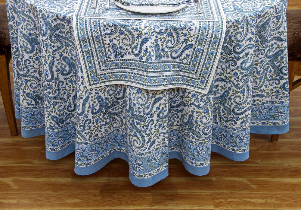 WELCOME Beautifully handcrafted Wooden Block Printed Cotton Table Cover, created by local artisans of India,designed using classic, ethnic and royal prints as inspirations. Our block printed textiles are not only eco-friendly but also sustainable made using finest quality cottons and best quality organic printing colors. This Table Cover is the perfect go-to shot for accessorizing your table. It stands out as a statement piece, delighting the surrounding space with fine aesthetics. To check our more of our product range, please visit our shop link - https://www.ebay.com/str/homespuncraft Product Details - Design: Floral, Royal & Classic Technique / Print: Wooden Block Printedwith Hands Material / Yarn Type: 100% Natural Cotton (Eco-Friendly) Color : Blue and White Dimensions/Sizes Available - Shape: Rectangle/Square 4 Seater: 60 X 60 inches (150 X150 Cm.) 4 Seater: 72 X 72 inches (180 X180 Cm.) 6 Seater: 60 X 90 Inches (150 X 225 Cm.) 6 seater: 48 x 102 Inches (120 X 260 Cm.) 8 Seater: 90 X 90 Inches (225 X 225 Cm.) 8 Seater: 72 X 108 Inches (180 X 275 Cm.) 8 Seater: 110 X 110 Inches (280 X 280 Cm.) 10 Seater: 72 X 118 Inches(180 X 300 Cm.) 12 Seater: 72 X 135 Inches (180 X 345 Cm.) 12 Seater: 72 X 140 Inches (180 X 355 Cm.) 12 Seater: 80 X 120 Inches (200 X 305 Cm.) 14 Seater: 72 X 160 Inches (180 X 405 Cm.) 16 Seater: 72 X 180 Inches (180 X 460 Cm.) 16 Seater: 72 X 190 Inches (180 X 480 Cm.) Shape: Round 4 Seater round: 60 X 60 Inches Round (150 X 150 Cm. Round) 4 Seater round: 72 X 72 Inches Round (180 X 180 Cm. Round) 6 Seater round: 90 x 90 Inches Round (225 x 225 Cm. Round) 8 Seater round: 110 x 110 Inches Round (280 x 280 Cm. Round) Table Runner - Wide - 20 Inches for all sizes (50 Cm. for all sizes) Length - Same length as the length of the table cover selected For Example, for a 72 x 140 Inches table cover order, the runner size would be 20 x 140 Inches. For a 60 x 90 Inches table cover order, the runner size would be 20 x 60 Inches and so on… Napkins: 16 X 16 Inches (40 X 40 Cm.) Table Mats: 13 x 18 Inches (35 x 45 Cm.) Number of Napkins and Table Mats shall be same as per the number of seater ordered. For Example, for a 4 seatertable cover ordered, it would be a set of 4 napkins and 4 table mats. For a 6 seatertable cover ordered, it would be a set of 6 napkins and 6 table mats and so on… Wash & Care Recommendations Wash Separately Preferably If Machine wash: Gentle cycle at 30°C If Hand wash: In Cold Water with mild or organic liquid detergents and air dry for longer durability and colour vibrancy Tumble dry: Low setting Iron: Low heat setting //Do not Soak. Do not use harsh detergents. Do not bleach. This Hand Block Printed Cotton Table Cover can be used for: Dining Table ,Coffee Table , Centre Table , etc NOTE-1 - All our textiles are handmade and are worked on by multiple artisans and the product goes through multiple hand-processes. Hence, there could be a very little variation than the actual look from the photos, which indeed is the characteristic of this handmade textile giving it an authentic handmadelook. NOTE-2 - Actual colors may slightly vary from the colors shown in the pictures due to different monitor screen settings, photography setup with natural lights and the nature of the product, being 100% hand made. NOTE-3 - Also please note that as per the policy mentioned on Ebay on the product page,any import duty, taxes occurred in the client's country will be borne by the client. Normally it does not occur. Thank You very much for visiting our store.