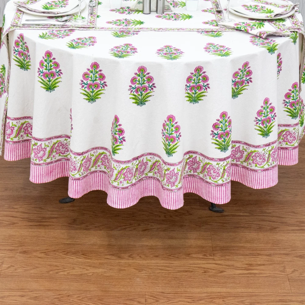 WELCOME Beautifully handcrafted Wooden Block Printed Cotton Table Cover, created by local artisans of India,designed using classic, ethnic and royal prints as inspirations. Our block printed textiles are not only eco-friendly but also sustainable made using finest quality cottons and best quality organic printing colors. This Table Cover is the perfect go-to shot for accessorizing your table. It stands out as a statement piece, delighting the surrounding space with fine aesthetics. To check our more of our product range, please visit our shop link - https://www.ebay.com/str/homespuncraft Product Details - Design: Floral, Royal & Classic Technique / Print: Wooden Block Printedwith Hands Material / Yarn Type: 100% Natural Cotton (Eco-Friendly) Color : White and Pink Dimensions/Sizes Available - Shape: Rectangle/Square 4 Seater: 60 X 60 inches (150 X150 Cm.) 4 Seater: 72 X 72 inches (180 X180 Cm.) 6 Seater: 60 X 90 Inches (150 X 225 Cm.) 6 seater: 48 x 102 Inches (120 X 260 Cm.) 8 Seater: 90 X 90 Inches (225 X 225 Cm.) 8 Seater: 72 X 108 Inches (180 X 275 Cm.) 8 Seater: 110 X 110 Inches (280 X 280 Cm.) 10 Seater: 72 X 118 Inches(180 X 300 Cm.) 12 Seater: 72 X 135 Inches (180 X 345 Cm.) 12 Seater: 72 X 140 Inches (180 X 355 Cm.) 12 Seater: 80 X 120 Inches (200 X 305 Cm.) 14 Seater: 72 X 160 Inches (180 X 405 Cm.) 16 Seater: 72 X 180 Inches (180 X 460 Cm.) 16 Seater: 72 X 190 Inches (180 X 480 Cm.) Shape: Round 4 Seater round: 60 X 60 Inches Round (150 X 150 Cm. Round) 4 Seater round: 72 X 72 Inches Round (180 X 180 Cm. Round) 6 Seater round: 90 x 90 Inches Round (225 x 225 Cm. Round) 8 Seater round: 110 x 110 Inches Round (280 x 280 Cm. Round) Table Runner - Wide - 20 Inches for all sizes (50 Cm. for all sizes) Length - Same length as the length of the table cover selected For Example, for a 72 x 140 Inches table cover order, the runner size would be 20 x 140 Inches. For a 60 x 90 Inches table cover order, the runner size would be 20 x 90 Inches and so on… Napkins: 16 X 16 Inches (40 X 40 Cm.) Table Mats: 13 x 18 Inches (35 x 45 Cm.) Number of Napkins and Table Mats shall be same as per the number of seater ordered. For Example, for a 4 seatertable cover ordered, it would be a set of 4 napkins and 4 table mats. For a 6 seatertable cover ordered, it would be a set of 6 napkins and 6 table mats and so on… Wash & Care Recommendations Wash Separately Preferably If Machine wash: Gentle cycle at 30°C If Hand wash: In Cold Water with mild or organic liquid detergents and air dry for longer durability and colour vibrancy Tumble dry: Low setting Iron: Low heat setting //Do not Soak. Do not use harsh detergents. Do not bleach. This Hand Block Printed Cotton Table Cover can be used for: Dining Table ,Coffee Table , Centre Table , etc NOTE-1 - All our textiles are handmade and are worked on by multiple artisans and the product goes through multiple hand-processes. Hence, there could be a very little variation than the actual look from the photos, which indeed is the characteristic of this handmade textile giving it an authentic handmadelook. NOTE-2 - Actual colors may slightly vary from the colors shown in the pictures due to different monitor screen settings, photography setup with natural lights and the nature of the product, being 100% hand made. NOTE-3 - Also please note that as per the policy mentioned on Ebay on the product page,any import duty, taxes occurred in the client's country will be borne by the client. Normally it does not occur. Thank You very much for visiting our store.