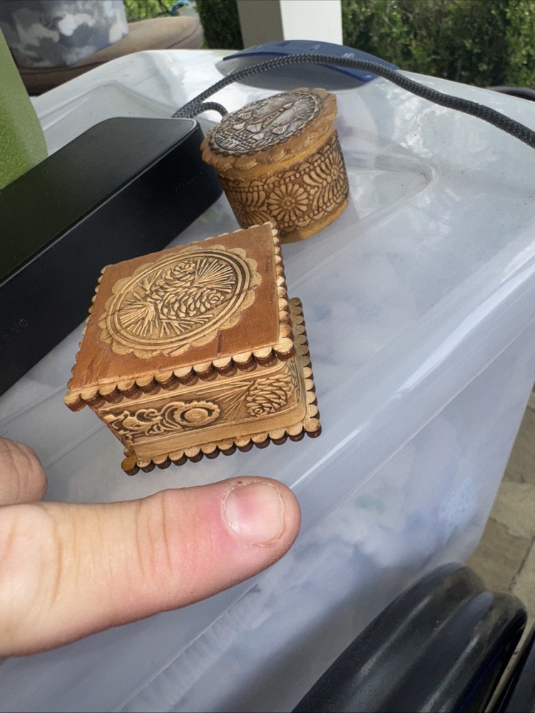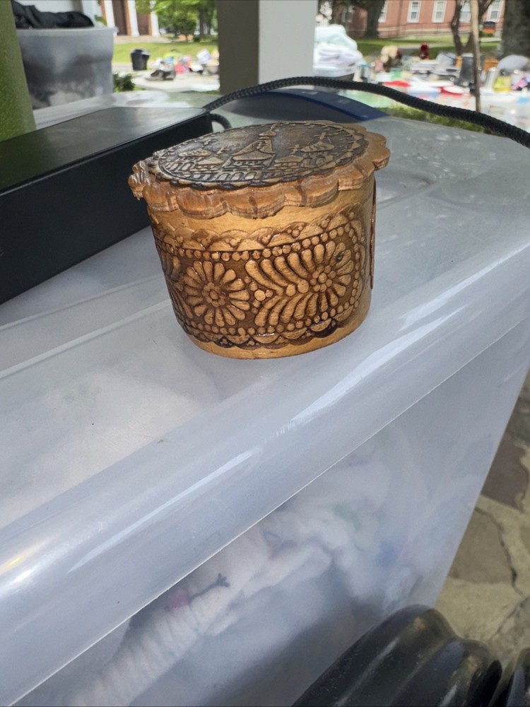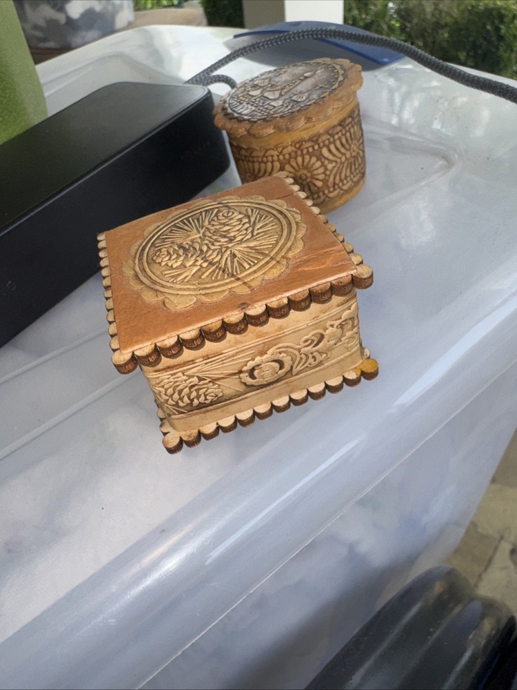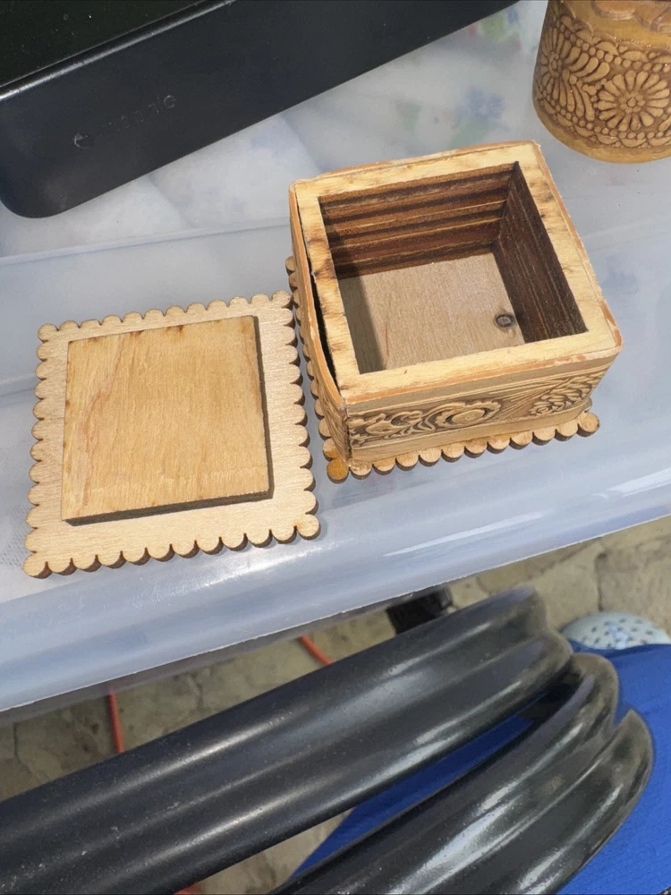 Hinged Wooden Trinket Box Featuring Indian Lady Feeding Bird Design 3.5 Inch Square