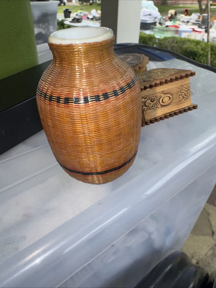 $ 6.34Vintage Slag Stained Glass White Pink Rose Small Hinged Trinket Jewelry Box..AI.