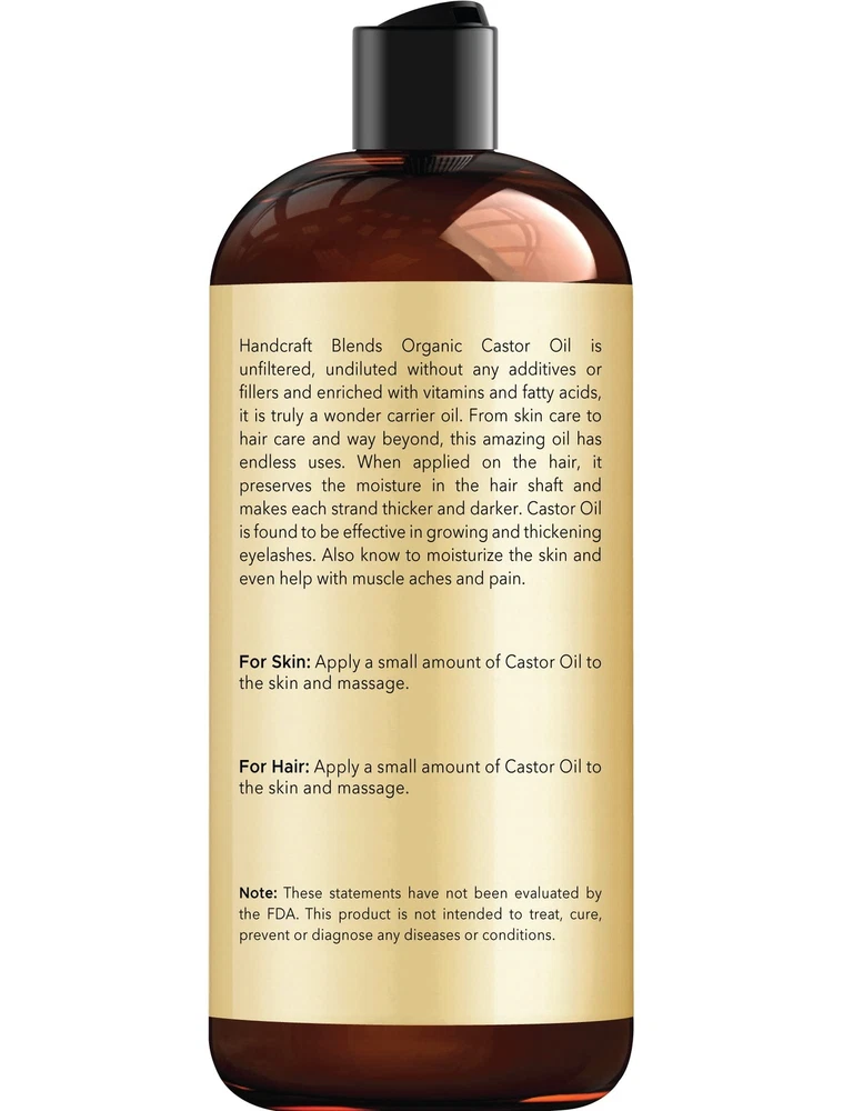 Handcraft Blends Organic Castor Oil - 16 Fl Oz - 100% Pure and Natural - Premium Grade Carrier Oil for Hair Growth, Eyelashes and Eyebrows - Hair and Body - Expeller-Pressed & Hexane-Free 100% PURE & NATURAL ORGANIC CASTOR OIL IN PLASTIC BOTTLE – Our USDA organic castor carrier oil is used for essential oils mixing, hair care skin care, aromatherapy massage and has endless uses. Expeller-Pressed and Hexane-Free. HAIR GROWTH OIL – Castor Oil helps moisturize and nourish the hair shaft locking in moisture in hair shaft for healthier looking hair. A moisturizing hair oil for women and men, is good for all hair types. CASTOR OIL FOR EYELASHES AND EYEBROWS – Castor oil is full of nutrients that may help promote natural lash growth and hair growth. Known to help strengthen eye lashes and eyebrows to create a naturally full lash line. SOOTHING MASSAGE OIL – Castor oil is an excellent massage oil to help soothe and calm the skin. NATURAL SKIN MOISTURIZER – Adding castor oil to your skincare routine can help nourish and hydrate the skin. It contains many awesome fatty acids that deeply penetrate the skin and retain moisture. Shipping We offer FREE shipping on all orders! We ship within Three business days of payment, usually sooner. We use a selection of shipping services such as UPS, FedEx, USPS etc. We only ship to the lower 48 states, no APO/FPO addresses or PO Boxes allowed. Local pickups and combined shipping options are not provided at this time. Return You can return a product for up to 30 days from the date you purchased it. Any product you return must be in the same condition you received it and in the original packaging. Please keep the receipt. Feedback Customer satisfaction is very important to us. If you have any problem with your order, please contact us and we will do our best to make you satisfied. Contact Us If you have any queries, please contact us via ebay. We usually respond within 24 hours on weekdays. Please visit our eBay store to check out other items for sale! Thank you for shopping at our store.