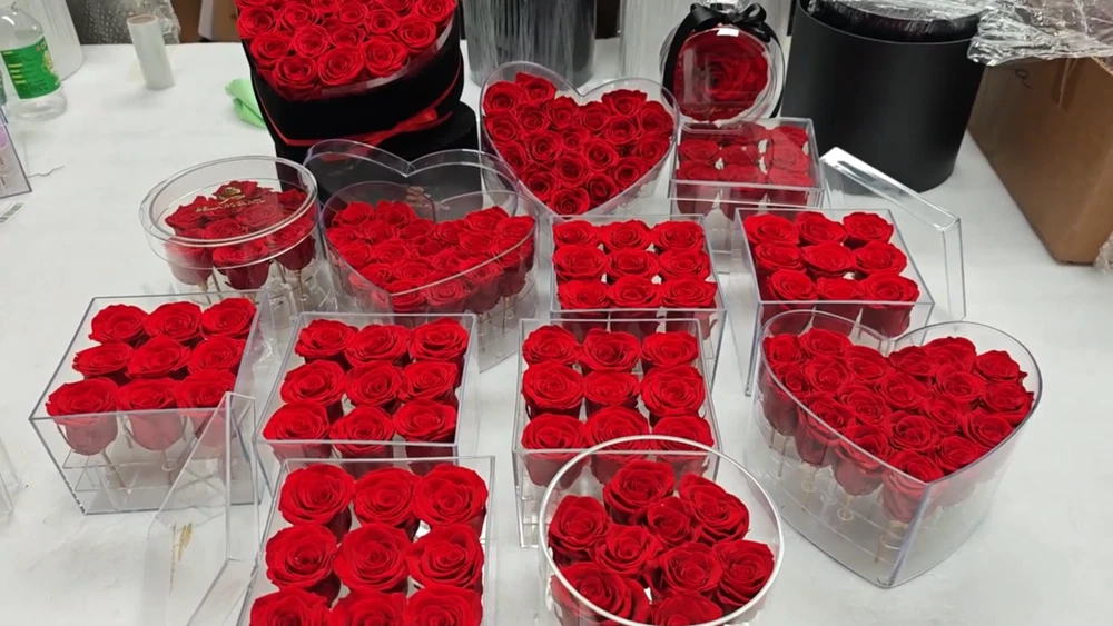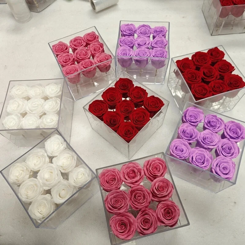 This handcrafted acrylic box features a unique heart and square design, perfect for storing small items or gifting your loved one. The box is adorned with beautiful decorative flowers and wreaths, making it a great addition to any holiday decor. The box is made of preserved fresh flower material and comes in a carton box packaging. It is applicable for various occasions such as weddings, graduations, and holidays like Valentine's Day and Mother's Day. The box is lightweight, weighing only 0.5kg, and measures 8x8x12 cm in size. You can also customize the color of the box to suit your preferences.