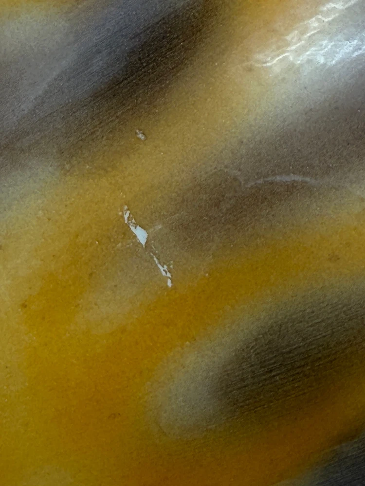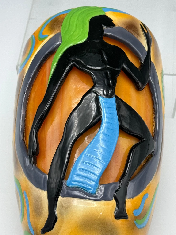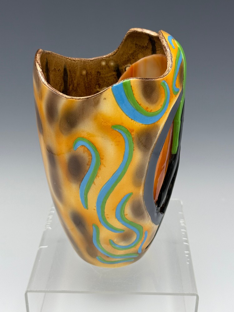 Up for your consideration is this very interesting studio crafted vase. It is a combination of ceramic with a slag glass insert. This measures 5 1/2" across and 8 1/2" in height. The base is signed, but we could not find any information out about this studio. There is a small scuff on the back and a teeny nick shown in the photos that may be from when the vase was made. Please check out our photos and message with any questions. Thank you for visiting. This is a fun retirement gig for us. We try our best to describe all our items as accurately as possible. You can count on customer service being our priority. Got any questions? Feel free to drop us a message via eBay anytime. We are happy to combine shipping of items. If you purchase multiple items and we can combine them safely, we will refund you for the over payment of shipping. Please do not worry, we do this everyday. Please be patient for a response from us, we are not always online. We take pride in delivering 100% satisfaction, evidenced by our feedback. If you aren't entirely happy with your purchase, don't wait! Just drop us a line. We'd much rather partner with you than have negative feedback left. We aim to ship your items within 3 days of the sale. Most of our packages will be shipped out USPS or FedEx. We only use quality shipping materials and do not pack with old dirty boxes and newspaper. We take pride in making sure your items are treated with detailed attention so you will receive them intact. Our goal is to get your treasures to you safely. Occasionally you may see a refund from us for shipping costs after your items are packed. We are just passing back any over payments for shipping paid. If you get a damaged package, don’t worry! Just give us a shout and we'll sort it out.