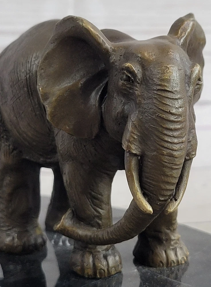 Bronze Sculpture Hand Made Statue Animal Wildlife African Elephants Elephant Art Bronze Sculpture Hand Made Statue Animal Wildlife African Elephants Elephant Art Condition : This sculpture is in perfect condition. Bronze Dimensions with Marble Base: Height 5" x Width 8.5" Marble Dimensions: Diameter 8.5" Height without base:4" Weight:5 LBS Inventory:26AL5284662 Behold the tender bond between a mother elephant and her calf, mirrored in the animal kingdom. With utmost care and love, the mother elephant strides beside her young one, providing a sense of protection and guidance. This heartwarming scene captures a blissful moment of harmony and joy. These magnificent creatures, depicted in this bronze sculpture, are sure to bring delight and wonder into your home. The sculpture, expertly crafted using the lost wax method, showcases intricate details that accentuate the natural beauty of the elephants. From the texture of their skin to the gentle sway of their steps, every aspect is meticulously captured. The piece stands on a sleek black marble base, elevating its aesthetic appeal and providing a sturdy foundation. To signify its artistic quality and provenance, the sculpture is signed by the esteemed artist Barye. This signature not only adds value but also serves as a testament to the artistry and craftsmanship involved in its creation. Display this remarkable piece in your living space and let it serve as a symbol of love, familial bonds, and the awe-inspiring beauty of the animal kingdom. inkfrog terapeak Mother and Child African Elephant Animal Kingdom Barye Bronze Sculpture Figurine www.bronzhaus.com Video will open in a new window Using the eBay App? Paste link into a browser window: [isdntekvideo] Shipping Terms : Most of our items are shipped via USPS (United States Postal Service) mail or UPS. Most orders are shipped within 24-48 hours of purchase. Please be aware that not all items are available for USPS shipping due to size and weight. We do ship to Hawaii, Alaska, Canada, Puerto Rico, APO/AE, and U.S. Virgin Islands, however, an additional charge may be required. Please contact us before making any purchases in these areas. For Non-USA customers, you may be responsible for all duty, tax, brokerage fees that may be due upon delivery (shipping costs cover freight charges only). We also ship internationally. Please refer to the "Shipping and Handling" chart for the rates for each area. Payment : We accept just about any form of payment. PayPal, Master Card, Visa or American Express credit cards. Money orders, cashiers checks, and even personal or business checks. For governmental institutions, we will also accept a purchase order. Please understand that for personal or business checks we have to wait for the check to clear (usually 7 days) before shipping. Condition : New Detailed Hand Crafted Hot Cast Bronze Satisfaction Guaranteed. This is Stock Photo, Slight Color Variation!! Listing and template services provided by inkFrog