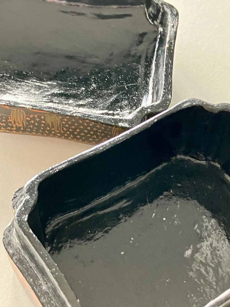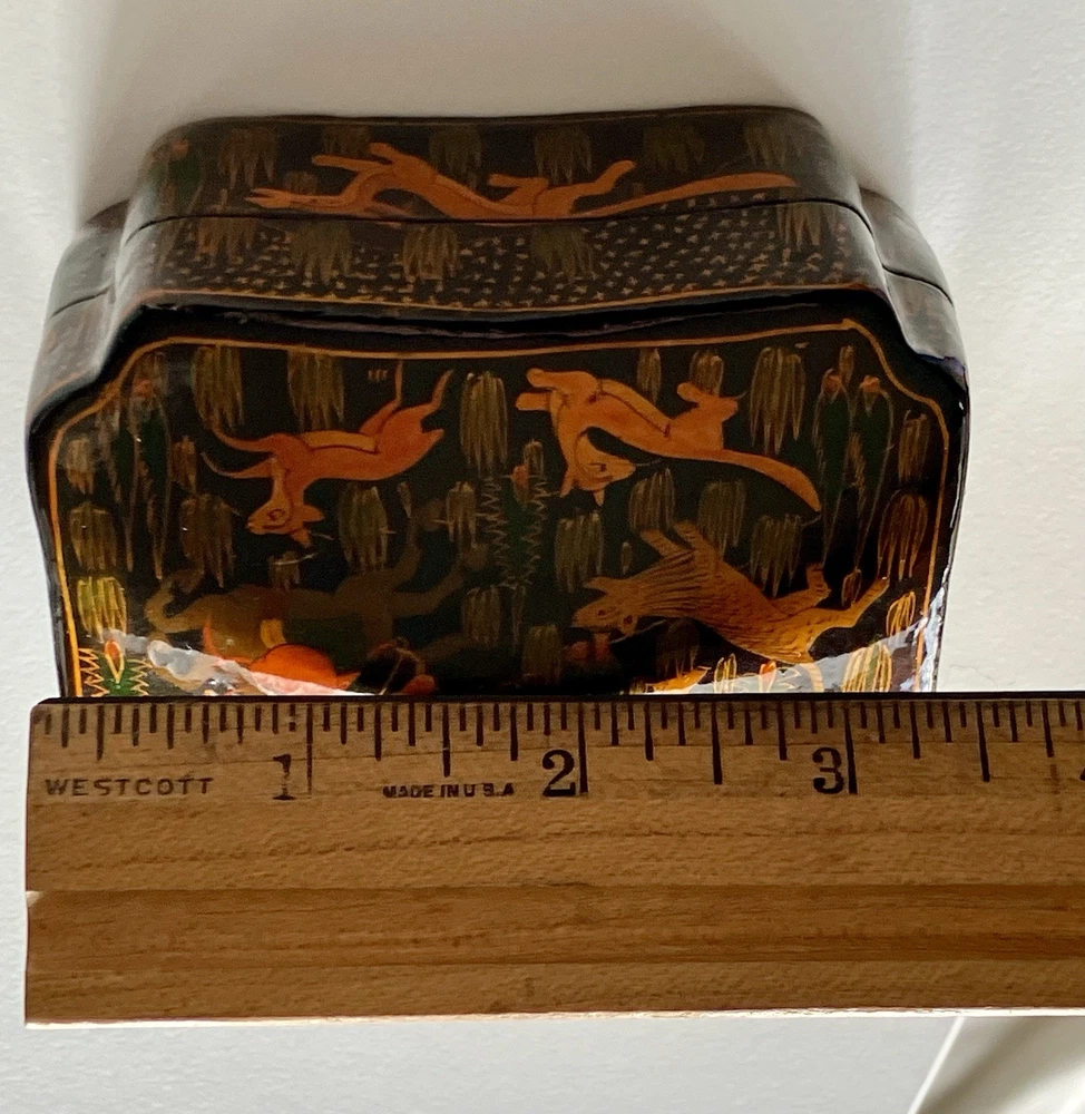 Brand: Kashmir Features: Boxed Item Length: 1.75 in Type: Trinket Box Finish: Lacquered Size: Small Subject: Boxing