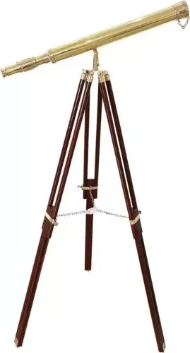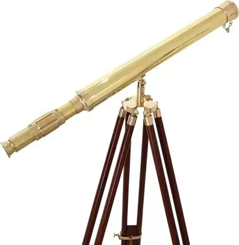 Material : Brass & Wood Finish : Shiny Brass Finish TUBE LENGTH OF TELESCOPE : 45 cm MAXIMUM HEIGHT OF TELESCOPE : 70 cm The focus is adjusted by rotating the threaded section near the eyepiece. Use : Home & Office Décor ,Gift, Collectible, Replica etc. Packing : Packed in single Parcels, Corrugated Export packing 100% Brand New and high quality. Look Photos For Actual Image Of Product. All Work is Hand Made. This is a Reproduction Item, Not Sold As Antique. Good Piece Of Collection. A Great gift for nautical lovers