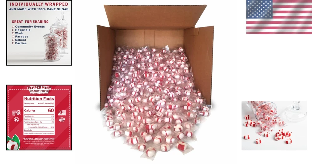 Handcrafted Peppermint Candy Puffs - 20 lb of Melt-in-Your-Mouth Wonders ‹ › ‹ › ‹ › ‹ › ‹ › ‹ › ‹ › ‹ › ‹ › Handcrafted Peppermint Candy Puffs 20 lb of Melt-in-Your-Mouth Wonders Individually Wrapped: Perfect for sharing! Delight your co-workers, friends, and family with these exquisite treats that will quickly make you their favorite. Handcrafted Candy: Each candy puff is lovingly crafted with a tradition dating back to 1890. Our artisans still mold and apply the iconic red stripes by hand, making each piece beautifully unique in size and shape. Corn Syrup Free: Experience the refreshing flavor made with 100% cane sugar and all-natural peppermint oil. Indulge guilt-free in this delicious candy puff sensation! Made in the USA: Proudly produced in Lexington, North Carolina, our family-owned business has been delivering joy through sweets since 1890. Support local craftsmanship while enjoying these delightful candies. Why You’ll Love Our Candy Puffs: These Handcrafted Peppermint Candy Puffs are not just sweets; they are a reminder of cherished traditions and authentic quality ingredients. Perfect for dipping into nostalgia, each melt-in-your-mouth puff lends a refreshing burst of peppermint that will elevate any gathering. Whether enjoyed alone or shared, these candies guarantee to evoke smiles and fond memories. Be the star of the office or simply indulge yourself with these exquisite, handcrafted delights. Order your 20 lb box of joy today and bring a taste of tradition home! Shipping Free & Fast Shipping - We offer free shipping to most of the USA with a normal delivery time of 3-7 days. However, due to the current situation, additional delivery time (up to 3 weeks) may be required for some items. Alternative Carriers - We may use alternative carriers (e.g. USPS, FedEx, UPS, etc.) to ensure your package arrives safely and on time. Due to the use of multiple carriers, we are unable to provide a tracking number automatically. Handling Time - Orders are processed and shipped within 1-2 business days of receiving cleared payment. Shipping Restrictions - Shipping to Alaska, Hawaii, Puerto Rico, Guam, and other US territories may incur shipping charges or delivery restrictions. Please contact us before ordering, or your order can be refunded/cancelled. State Restrictions - There may be restrictions based on your state of purchase. For example, certain items may not be shipped to California due to state regulations. Contact for Tracking Updates - If you require tracking updates or have any concerns about the delivery of your order, please feel free to contact us, and we will be happy to assist you. Return 30-Day Hassle-Free Returns - We want you to be completely satisfied with your purchase. If you are not, you can return the item within 30 days of receiving it for a full refund or exchange. Easy Return Process - To start a return, simply contact us and we will provide you with a prepaid return shipping label and detailed instructions. Restocking Fee - There are no restocking fees for returns. However, the buyer is responsible for return shipping costs if the return is not due to a seller's error. Refund Processing Time - Refunds will be processed within 5 business days of receiving the returned item in its original condition. Payment We accept all major credit cards, PayPal, and Apple Pay for your convenience. Your payment information is secure and encrypted to ensure a safe and seamless transaction. Please complete your payment within 3 days of purchase to avoid any delays in shipping. Feedback Your feedback is extremely important to us. We strive to provide the best products and customer service possible. If you are satisfied with your purchase, please take a moment to leave us a positive review. If you have any concerns or issues with your order, please contact us before leaving negative feedback. We are committed to resolving any problems and ensuring your satisfaction. Contact Us If you have any questions or concerns, please feel free to reach out to our customer support team. You can contact us through the eBay messaging system. We are available Monday to Friday, 9:00 am to 5:00 pm EST, and we will do our best to respond to your inquiry within 24 hours. Thank you for supporting our small family business! UPC: Not Set Expiration Date: Peppermint Candy Calories per 100 g/mL: Peppermint Candy Course: Snack Number in Pack: 1 Product Name: Not Set Style: Soft Theme: Not Set Unit Quantity: 20 Flavor: Peppermint Food Specifications: Corn Syrup Free Allergens: Not Set Labels & Certifications: Not Set Brand: Unbranded Product: Boiled & Hard Sweet Type: Mix Shape: Mix Packaging: Bulk Calories per Serving: Not Set MPN: Not Set Number of Servings: Not Set Serving Size: Not Set Occasion: Not Set Regional Cuisine/Region: Not Set Country/Region of Manufacture: Not Set Item Weight: 20 lb Food Aisle: Pantry Unit Type: lb