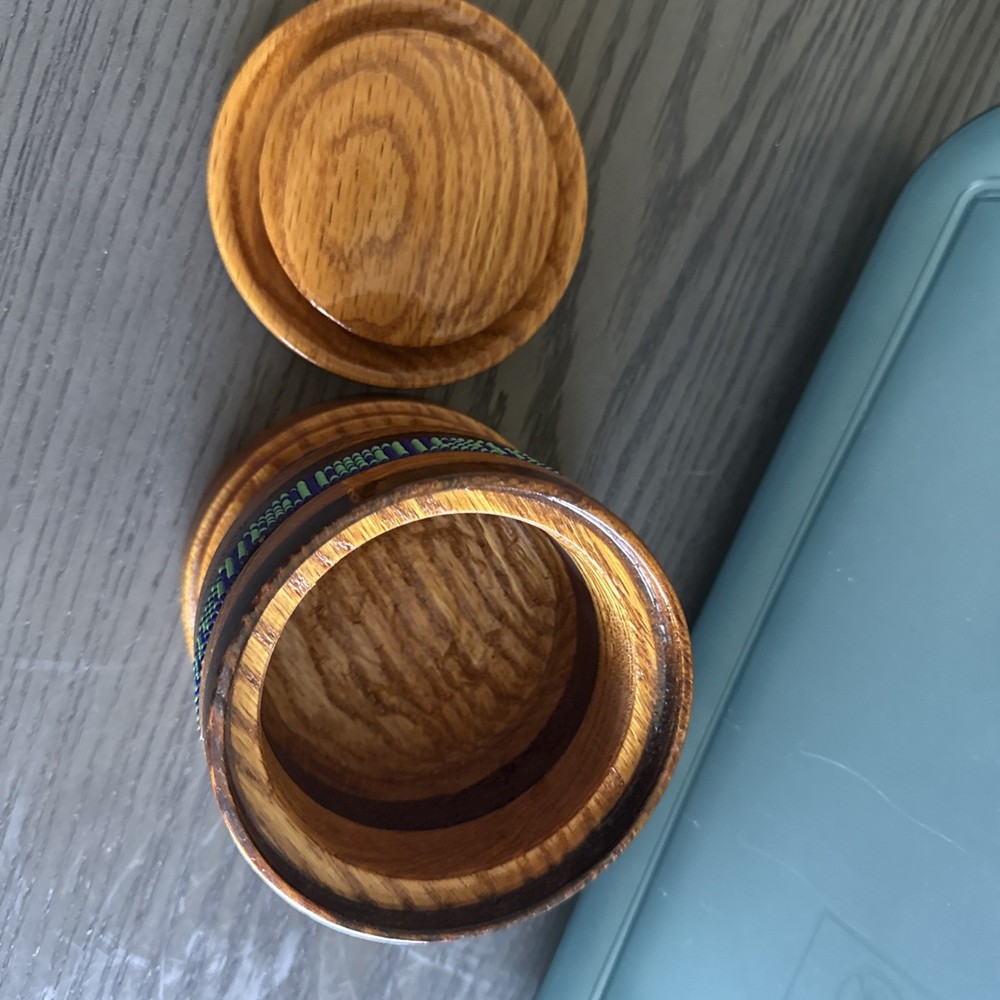 Collection: Keepsake Boxes Item Width: 4.5” Care Instructions: Clean with Damp Cloth Original/Reproduction: Original Occasion: All Occasions Brand: Wooden Department: Adults Material: Wood Room: Any Room Item Height: 5” Number in Pack: 1 Customized: No Finish: Patterned Engraved: No Shape: Round Packaging: Unboxed Suitable For: Furniture Type: Trinket Box Era: Late 20th Century (1970-1999) Item Length: 4.5 in Handmade: Yes Color: Brown