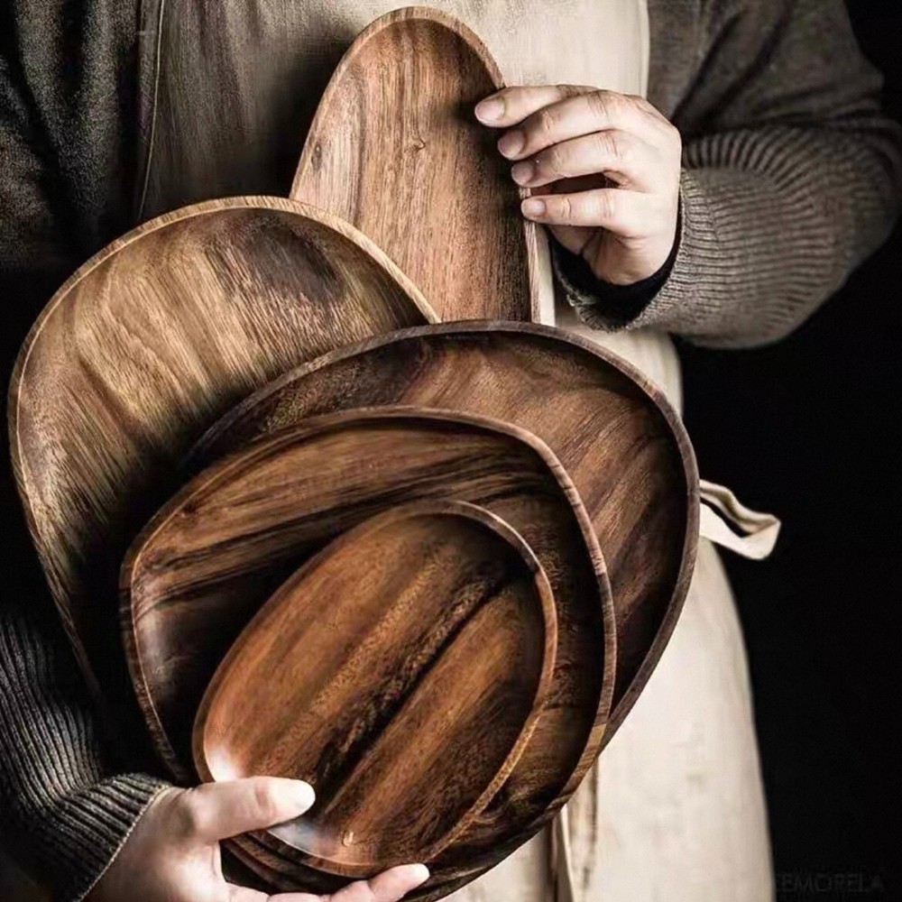 1. These rustic wooden trays add a touch of natural elegance to any table setting. The rich walnut grain and smooth finish make them perfect for serving everything from charcuterie to sushi. Each piece is unique, with a handcrafted charm that elevates everyday meals. The organic oval shape and food-safe polish blend beautifully with minimalist or Japanese-inspired decor. Sturdy yet lightweight, they’re as practical as they are beautiful—ideal for both casual and special occasions. Love how they bring warmth and style to my dining experience!