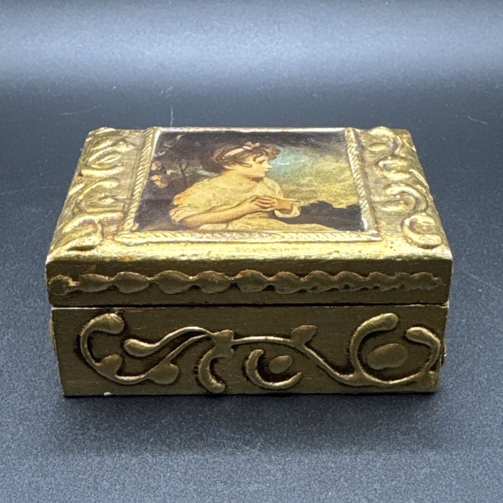 $ 7.39Vintage Indian Kashmiri Marigold Paper Mache Trinket Box with Birds & Floral Design