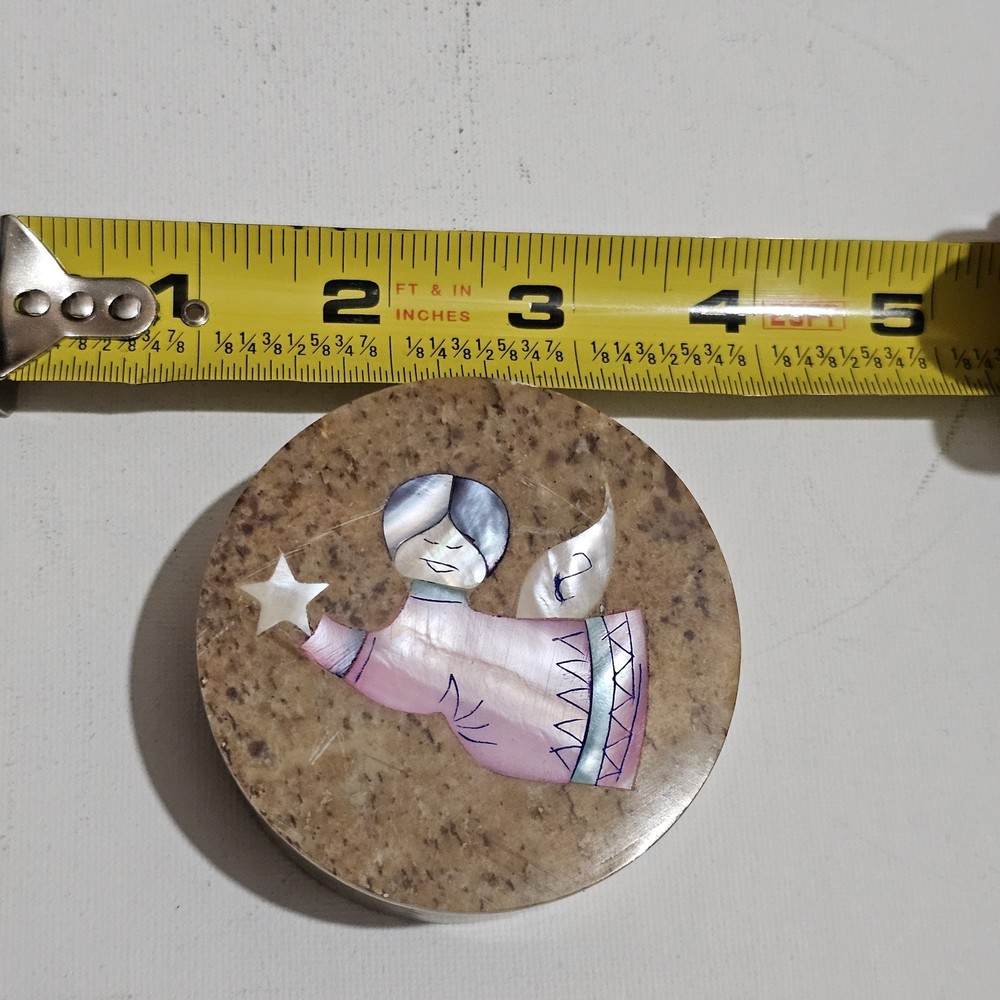 Handcrafted Soapstone Trinket Box with Mother of Pearl Angel Design from India A74