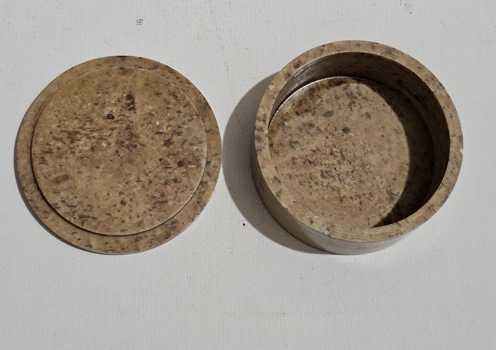 Type: Trinket Box Features: Boxed Subject: Boxing Character Family: Angel Country/Region of Manufacture: India Size: Small Brand: Unbranded Material: Soapstone Shape: Round