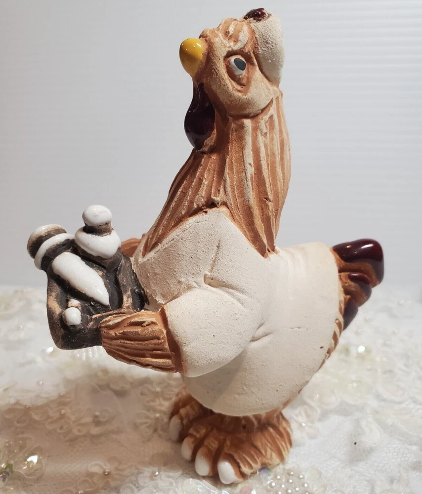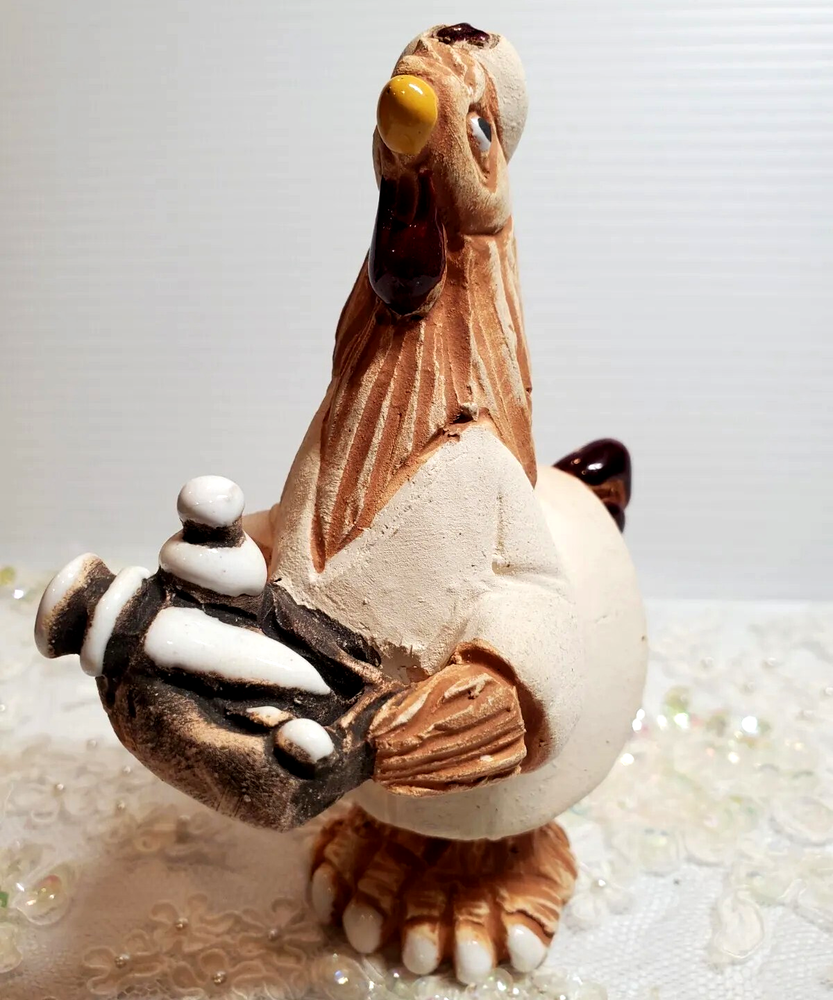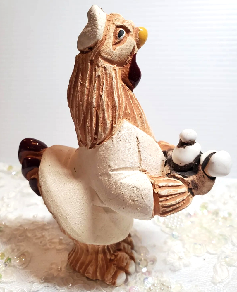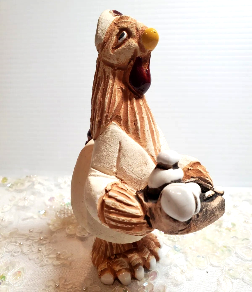Nurse Chicken Holding Tray Terracotta Pottery Uruguay Handmade 5 1/4" Height Figurine. No chips or cracks.