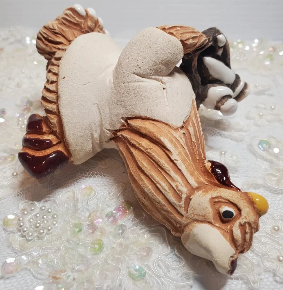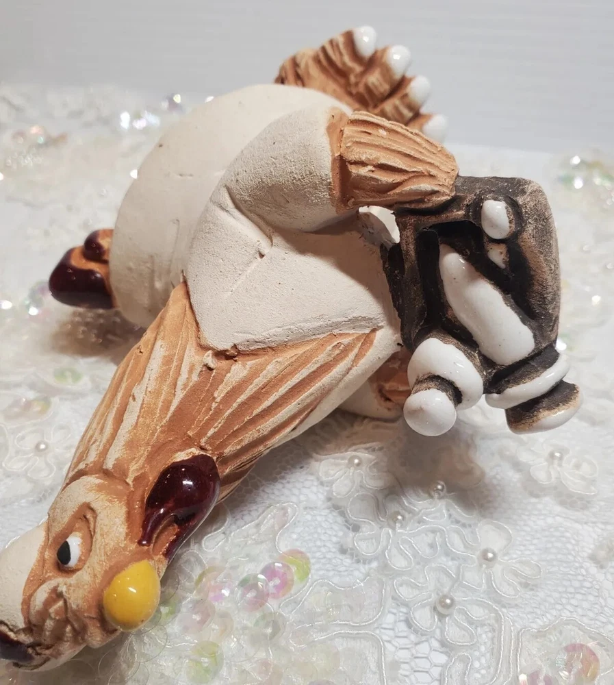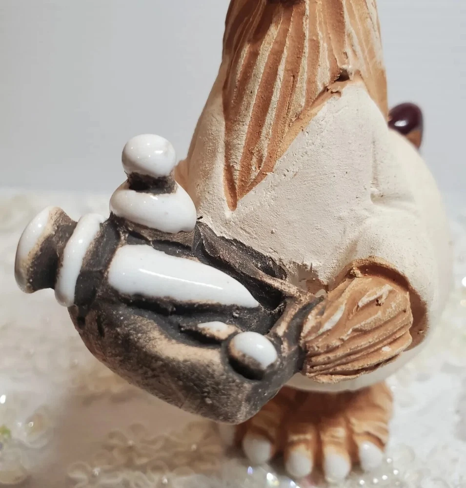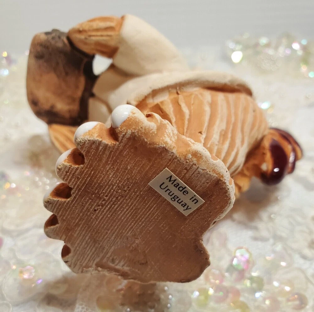 Nurse Chicken Holding Tray Terracotta Pottery Uruguay Handmade 5 1/4" Height Figurine. No chips or cracks.