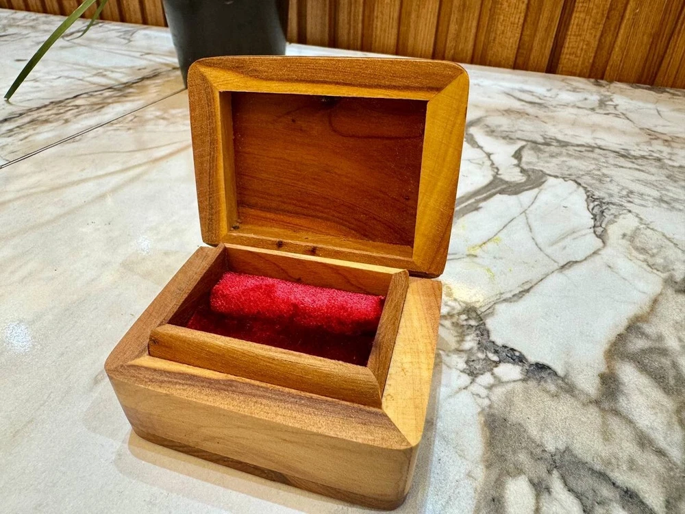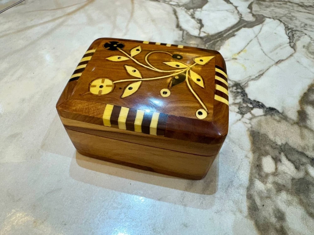 Discover the beauty of Moroccan craftsmanship with this exclusive set of 4 handcrafted Thuya wood ring organizer boxes – perfect for jewelry lovers, gift shops, or collectors seeking both elegance and functionality. Each box is skillfully handmade from premium Thuya wood, a rare and aromatic wood sourced from the Atlas Mountains of Morocco. Known for its stunning natural grain and rich scent, Thuya wood makes every box unique and full of character. Inside, the boxes are fitted with soft ring slots to keep your precious rings safe, secure, and beautifully displayed. Whether for personal use or as thoughtful gifts, these boxes add a touch of luxury to any collection. Key Features: ✔️ Set of 4 Ring Organizer Boxes ✔️ Handmade from Authentic Moroccan Thuya Wood ✔️ Natural Burl Patterns – No Two Boxes Are Alike ✔️ Aromatic, Polished Finish ✔️ Perfect for Rings, Earrings, or Small Keepsakes ✔️ Great for Gifting or Retail Display Dimensions (Each Box): • Length: 8 cm (3 inches) • Width: 6.5 cm (2.5 inches) • Height: 4.5 cm (1.8 inches) ✈ Shipping & Delivery: • Processing Time: 1 business day • Express Shipping: 3–5 business days delivery ✅ Satisfaction Guaranteed If you're not fully satisfied, you’re welcome to return the set. We want you to love your purchase! 😊