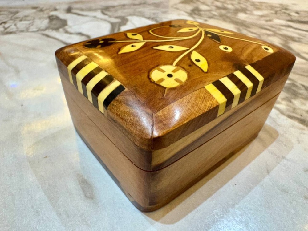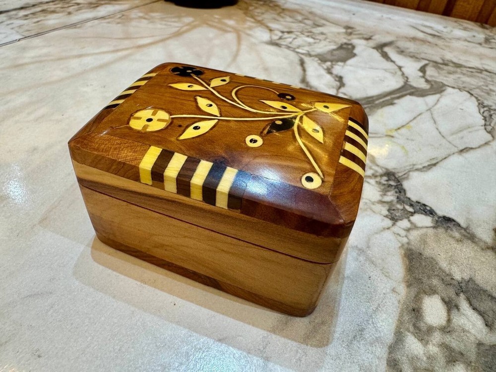 The jewelry box is very pretty, very carefully made, very much in the style of "good old craftsmanship". The seller is nice and helpful, he answers emails immediately. The shipment was delayed, but it was not the seller's fault, I was informed about it. It arrived on time. I recommend the seller and his items.