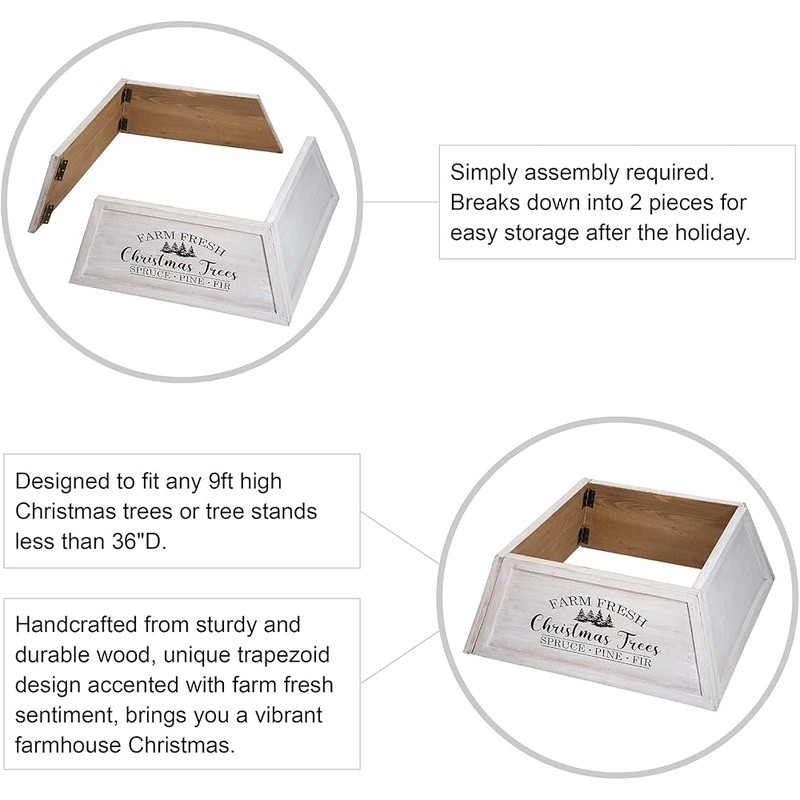 Wet Dog Food Chopped Ground Dinner Beef Canned Adult Nutrition 4 Pack 22oz Cans 15.68 USD 16.86 USD Free shipping 7% off Professional Handheld Seed Spreader Bag Seeder 25lbs Capacity W/ Waterproof Bag 48.52 USD 52.17 USD Free shipping 7% off Christmas Window Silhouette Lights 4 Pack Snowflake Snowman Deer Bell Decor New 51.97 USD 55.88 USD Free shipping 7% off Iridescent Glass Beverage Dispenser 1.5 Gallon Clear Drink Server W/ Lid Spigot 28.41 USD 30.55 USD Free shipping 7% off 3 in 1 Pasta Maker Attachment Kitchen Stand Mixer Roller Cutter Set Red New 51.88 USD 55.79 USD Free shipping 7% off 4-Person Clip & Camping Dome Tent Outdoor Portable Hiking Lightweight HOT 61.4 USD 66.02 USD Free shipping 7% off Durable 5.70-8 8-Ply Trailer Tire Non-Radial Highway Trailer Replacement Tire US 60.68 USD 65.25 USD Free shipping 7% off Large Jerky Gun W/ Stainless Steel Trigger 3 Attachments & 5 Spice Packets New 23.72 USD 25.5 USD Free shipping 7% off Cozy Plush Throw Blanket Multi Color Leopard Machine Washable Eco Friendly New 11.61 USD 12.48 USD Free shipping 7% off Durable Aluminum RV Stabilizer Jacks Set Adjustable Height Travel Trailers New 42.3 USD 45.48 USD Free shipping 7% off Acrylic Lying Deer Christmas Tabletop Decor Holiday Centerpiece Elegant Design 31.35 USD 33.71 USD Free shipping 7% off Musical Nutcracker Snow Globe Clara Christmas Decoration Plays Nutcracker Suite 48.34 USD 51.98 USD Free shipping 7% off About this item MATERIAL: This tree collar is handcrafted from sturdy and durable wood. The trapezoididal design adds your tree with uniqueness SIZE: The exquisite tree cover designed to fit any 9ft high Christmas trees or tree stands less than 36"D UNIQUE DESIGN: Christmas Tree Collar features unique trapezoid design accented with farm fresh sentiment, brings you a vibrant farmhouse Christmas EASY TO USE: Simply assembly required. You will simply take the 2 side panels and lock them into the front panel. From there you can then slide your box into place in front of your tree. Breaks down into 2 pieces for easy storage after the holiday FESTIVE ADDITION: Our handcrafted tree box collars add a rustic, elegant charm to any home or business. The tree boxes not only add beauty and hide the undesirable parts of your tree, but they also prevent kids and pets from getting into the bottom side of your tree Color: 26''l Natural Material: Wood Size: Large Brand: Pattern: Solid You may also like Heavy Duty Rolling Christmas Tree Stand Base 7ft to 9ft Artificial Trees New 90.98 USD Free shipping Round Velvet Polyester Tablecloth Checkered Border Dining Room Home Decor New 88.17 USD Free shipping Outdoor RGBIC Cone Tree Lights Smart Music Mode Decorative Christmas Lighting US 168.98 USD Free shipping Revolving Christmas Tree Stand 360 Rotation Music Remote Control Dual Mode New 83.18 USD Free shipping 4FT Prelit Christmas Tree Multi-Color LED Lights Indoor Outdoor Holiday Decor US 64.98 USD Free shipping Automatic Christmas Tree Stand Durable Water Level Indicator Easy Setup New 77.98 USD Free shipping Adjustable Christmas Tree Stand Heavy Duty W/ Wheels Easy Assembly Sturdy Metal 41.58 USD Free shipping Metal Christmas Tree Collar Rhombus Pattern Holiday Base Cover Tree Decoration 77.98 USD Free shipping Christmas Tree Stand Metal Wood Stable Assembly Big Water Capacity Gifts Storage 64.98 USD Free shipping Durable 360-Degree Rotating Christmas Tree Stand W/ Three Built-In Outlets New 64.98 USD Free shipping Sturdy Christmas Tree Stand 8ft Trees Easy Setup Safe Design No Tools Required 45.48 USD Free shipping Heavy Duty Cast Iron Tree Stand Easy Install Steel Legs Stable Support New 51.98 USD Free shipping
