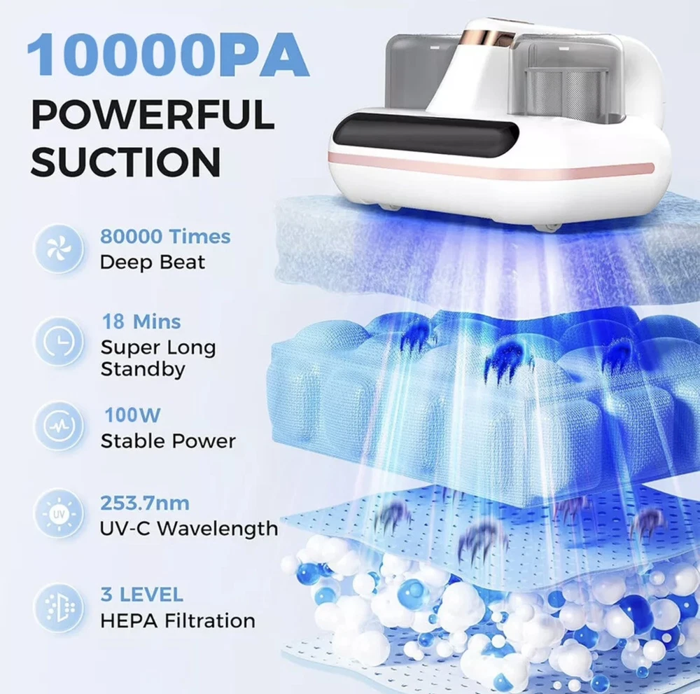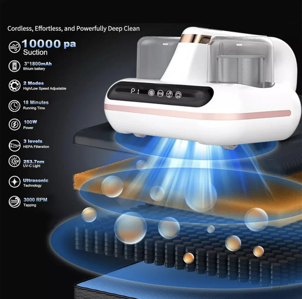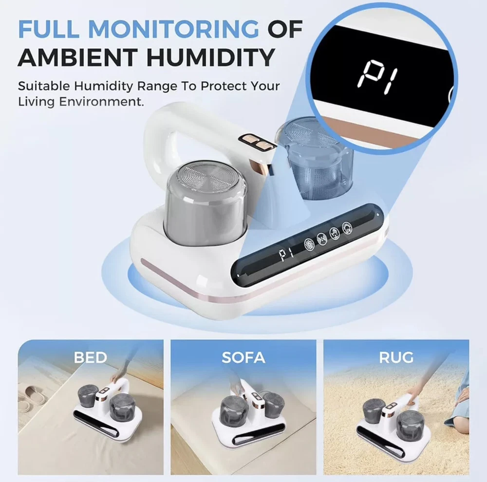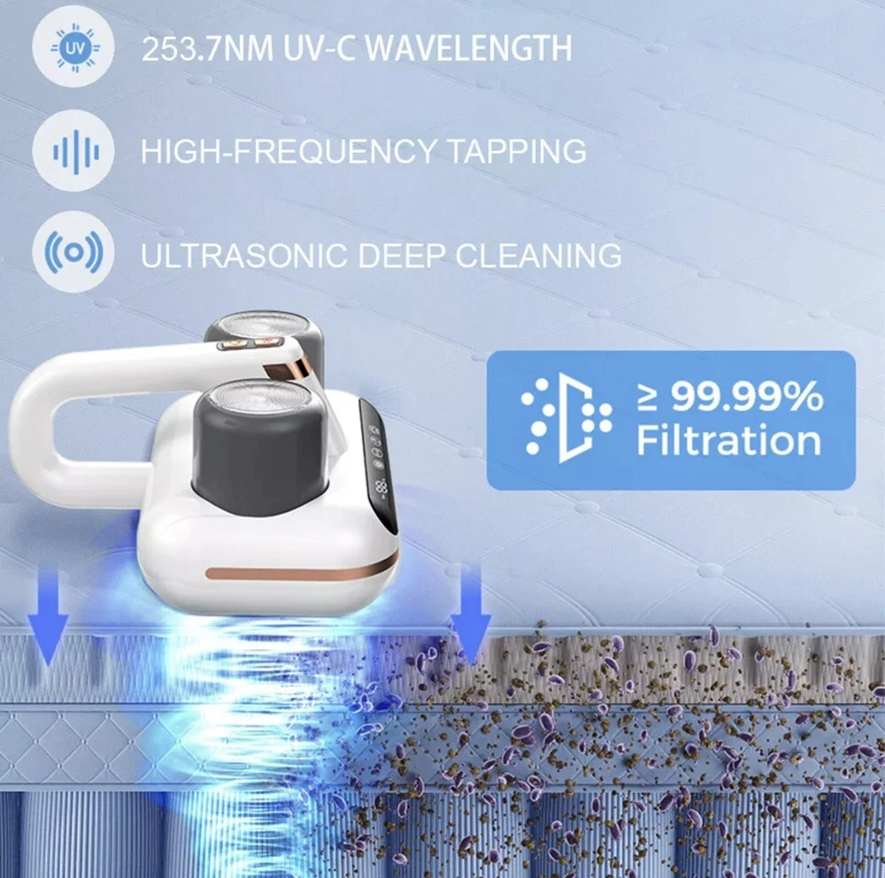 Handheld 5-in-1 Home Bed/Mattress Vacuum Sofa Cleaner And UV Cleaner. High frequency tapping, ultrasonic technology, environmental humidity detection