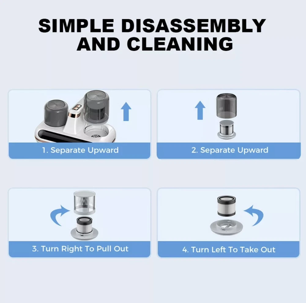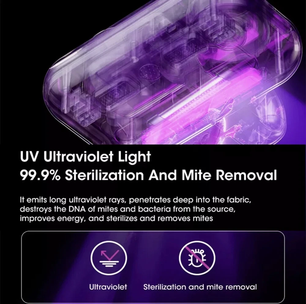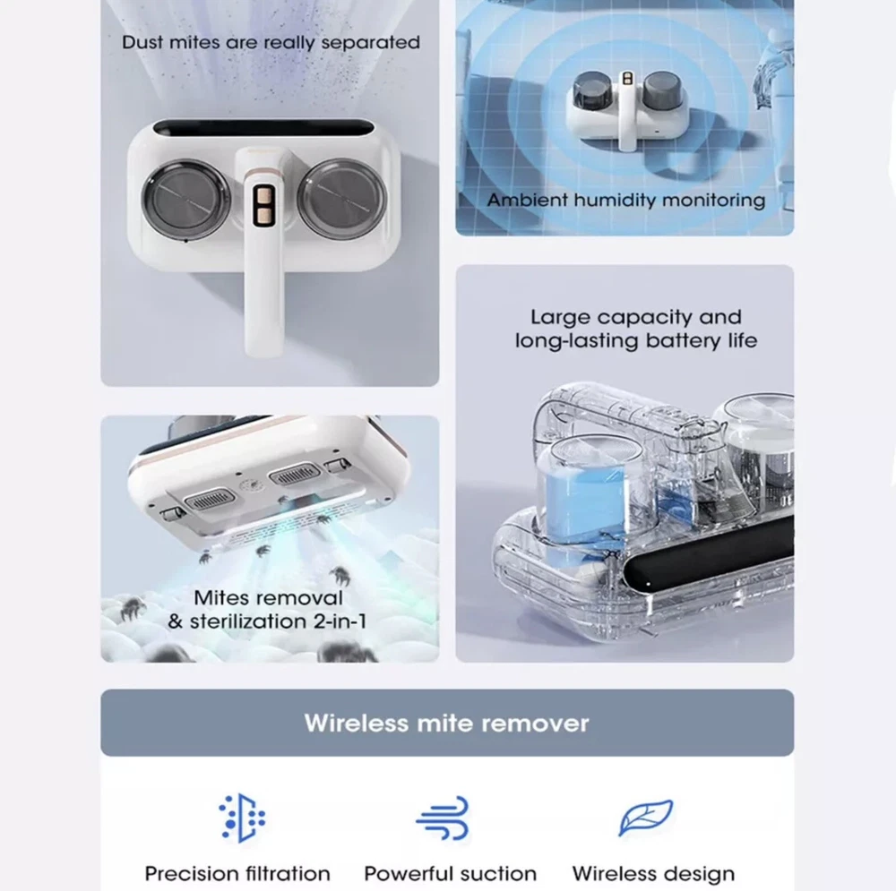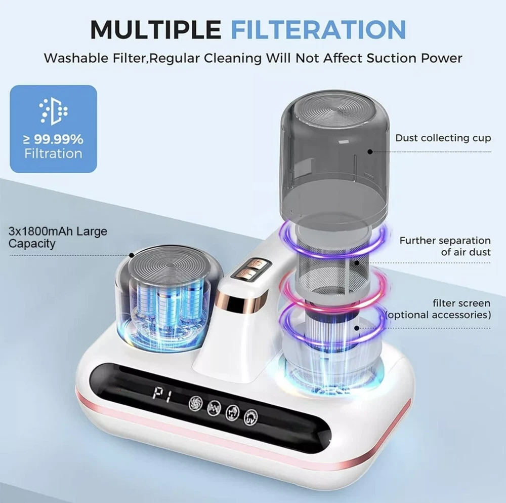 Handheld 5-in-1 Home Bed/Mattress Vacuum Sofa Cleaner And UV Cleaner. High frequency tapping, ultrasonic technology, environmental humidity detection