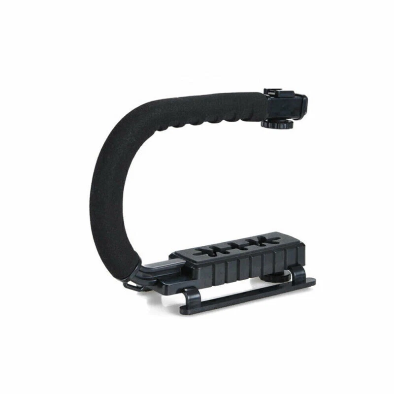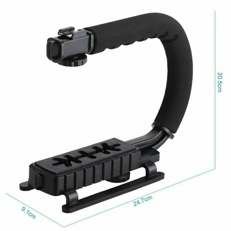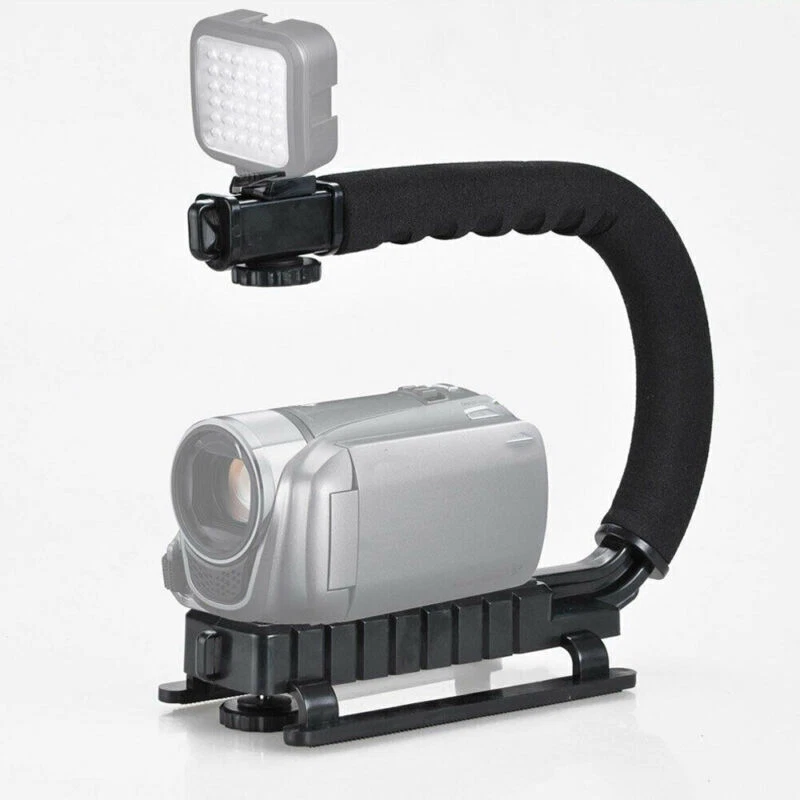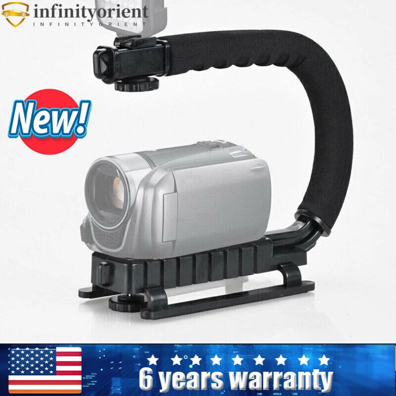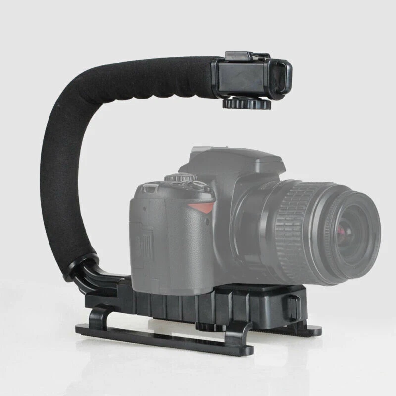 Handheld Camera Video Stabilizer Ste ady Cam DSLR Gimbal Camcorder Grip Specifications: Condition: Brand New Material: plastic & sponge Color: Black Size: 9.1*24.7*20.5cm Features: It provides excellent stability and reduces camera vibration during video record, assuring high-quality and clear video. Small enough to carry in your bag, stabilized footage of a conventional tripod mount. It is convenient to use while you go traveling with your friends on spare time. Ideal for making moving low angle videos and images. You can hold it by the arc and grab that popular selfie. It could be a good gift for your friend who like taking photos and video. Package Included: 1pc x Photo Video Camera C-type Stabilizer Hand Grip Note: Other accessories demo in the picture is not included. Actual colors may be a little different due to different monitors. Please allow 1-5mm deviation due to manual measurement.