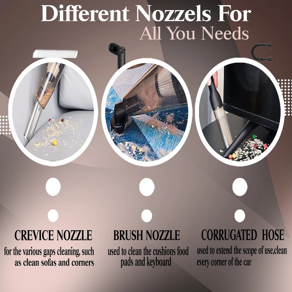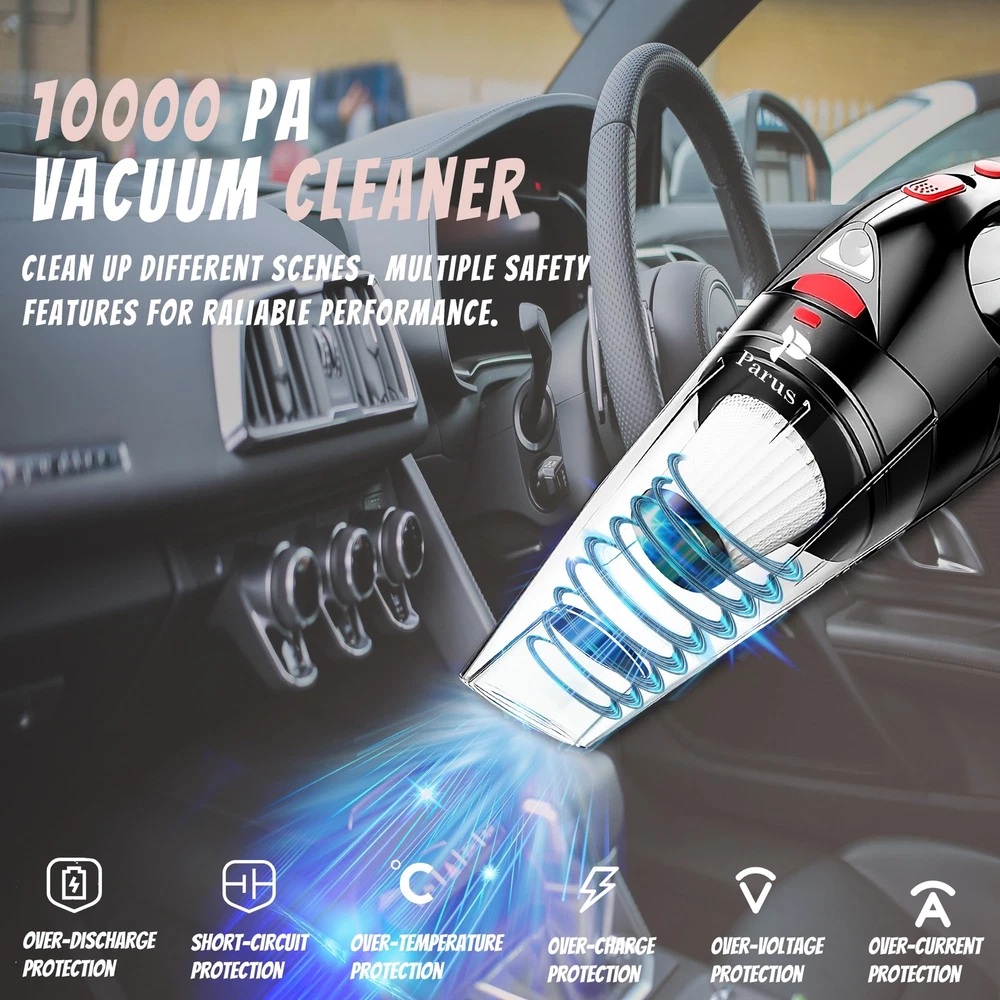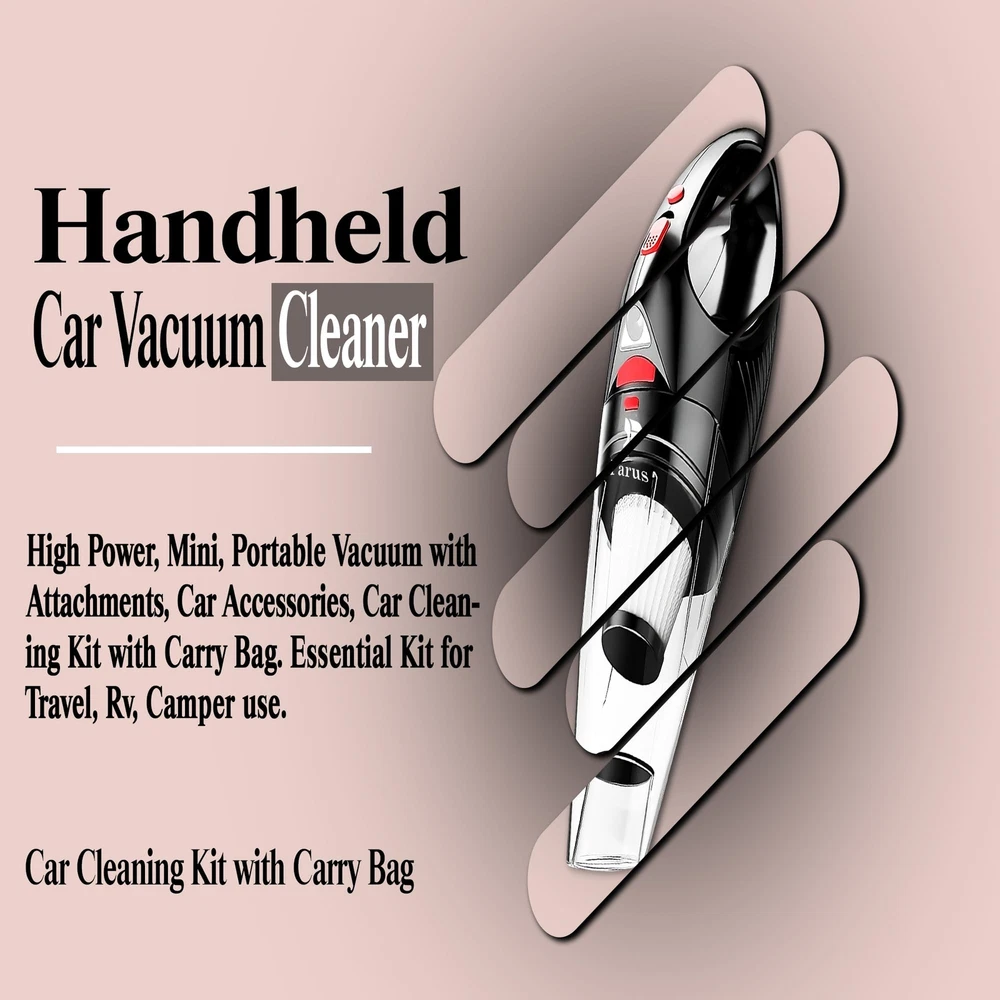 SUPERIOR SUCTION POWER - Our car vacuum cleaner boasts high-power performance, effortlessly tackling dirt, crumbs, and pet hair to leave your vehicle's interior spotless in minutes.solving out-of-reach problems. ULTIMATE PORTABILITY - Designed to be compact and lightweight, this portable car vacuum lets you clean your car anytime, anywhere, ensuring a pristine interior even during busy days on the road. MULTIFUNCTIONAL VERSATILITY - With a range of attachments and a wet/dry capability, this vacuum is a true all-in-solution. Clean every nook and cranny, from carpets to tight corners, and even deal with unexpected spills. LONG-LASTING PERFORMANCE - Built with durability in mind, this car vacuum is ready to withstand the rigors of regular use. Its robust construction ensures it will be a reliable companion for years to come. HASSLE-FREE OPERATION - Powered long-lasting battery, you won't need to worry about running out of battery. Keep your car impeccably clean with a vacuum that's always ready for action.