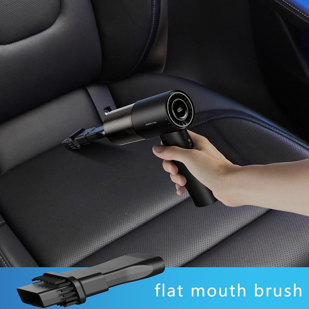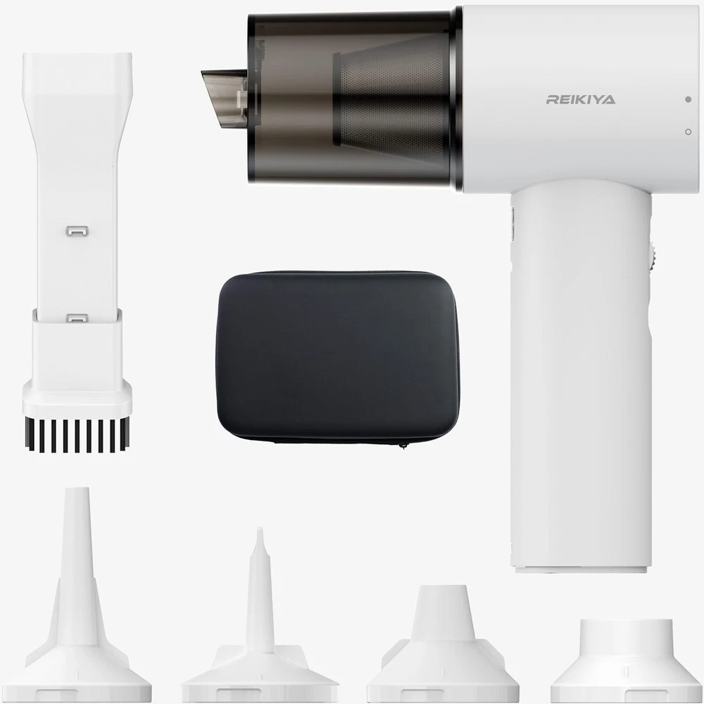 Handheld Car Vacuum Cleaner Cordless with Brushless Motor, High Power Vacuum Cleaner & Air Duster, 4 in 1 Keyboard Portable Vacuum Cleaner, Mini Hand Held Vacuum Cleaner for Car Home (White) Product Details Color: White Brand: REIKIYA MPN: HV-C10 white UPC: Does not apply EAN: Does not apply Brand: REIKIYA Special Feature: Cordless Filter Type: HEPA Filter Is Cordless?: Yes Capacity: 75 ml/min Brand: REIKIYA Special Feature: Cordless Filter Type: HEPA Filter Is Cordless?: Yes Capacity: 75 ml/min Wattage: 85 Watt-hours Runtime: 23 minutes Charging Time: 2.5 Hours Recommended Uses For Product: Car Form Factor: Handheld Color: White Model Name: HV-C10 Product Dimensions: 6.3"L x 2"W x 7"H Noise Level: 75 dB Battery Life: 23 minutes Manufacturer: Dongguan Baoyi Eletronic Technology Co.,Ltd Number of Items: 9 Number of Speeds: 13700 Portable: Yes Number of Power Levels: 1 Number of Wheels: 1 Total USB Ports: 1 Indoor/Outdoor Usage: Indoor Manufacture Year: 2024 Item Weight: 10.9 ounces Country of Origin: China Item model number: HV-C10 white Batteries: 1 Lithium Ion batteries required. (included) Batteries required: Yes Car Vacuum/Blower - Car Vacuum Cleaner: Your Car Cleaning ExpertNo more worries about car dust! Our car hoover is compact and portable with powerful suction to keep your car clean and fresh at all times. Cordless Freedom - Get rid of the cord and easily clean all corners of your car. Blower: Cleaning has never been so easy Efficiently blowing dust, cleaning quickly, making housework a breeze. Compact and portable, clean without boundaries Lightweight design, easy to carry, keep the environment tidy anytime, anywhere. This portable cordless car vacuum cleaner has a suction force of 9700Pa and a high speed of 13700RPM to provide a powerful cleaning power. This suction is enough to deal with the car dust, pet hair, food scraps and other common stains. The rapid heat dissipation function of the cordless vacuum cleaner can prevent the motor from overheating and extend the service life. With its powerful suction, efficient cleaning capability and portability, this vacuum cleaner is ideal for everyday home use and portable cleaning needs. The portable cordless car vacuum uses a Type-C charging port with a built-in 2600mAh rechargeable battery. It takes 2.5 hours to quickly charge and can run for half an hour, making it particularly convenient to charge this handheld vacuum cleaner anywhere. Using this cordless handheld vacuum will save you time for efficient cleaning. This handheld vacuum cleaner has both suction and blowing functions, allowing it to be used to inflate and pump air while removing dust and debris. The handheld vacuum's pumping power can be used to compress the bag, helping to save storage space. The inflatable function can quickly inflate inflatable items such as swimming rings, providing convenience for family entertainment or outdoor activities. The versatility and flexibility of this cordless vacuum cleaner make it a great addition to your everyday life.