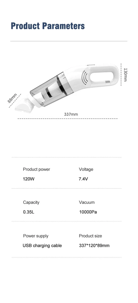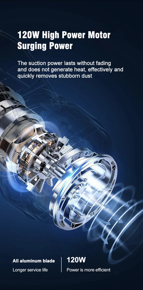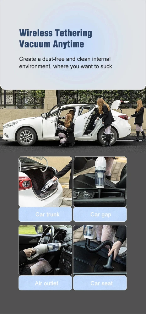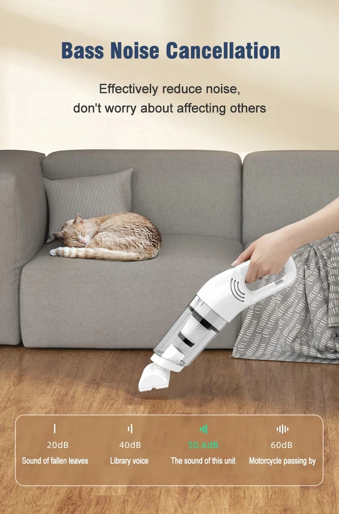 Wireless Car Vacuum Cleaner Motorized Roller Brush Cordless Portable LED Light