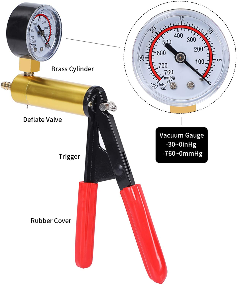 Business is our speciality NEW Brake Bleeder Kit with Hand Vacuum Pump with Gauge Adapters Automotive Brake Fluid Bleeding Set for Bike Car Truck (Red) FEATURES Multi-Functional Professional Testing Kit:The handheld vacuum pump kit with a vacuum pressure gauge enables precise pressure readings, covering a measurement range of 0-30 inches Hg (0-760 mmHg). Equipped with accessories for brake bleeding and automotive diagnostics, it is suitable for testing and diagnosing components and systems of bikes, motorcycles, trucks, pickups, and various vehicles, meeting professional needs in multiple scenarios. Effortless Single-Person Operation:The vacuum system tester allows independent operation for pumping out air, oil, steering fluid, and other fluids, while guiding new fluids to fill the entire system. No assistant is needed—you can easily complete maintenance tasks like brake bleeding alone, significantly improving repair efficiency and saving time and labor costs. Lightweight and Portable Design:The vacuum pump case of the brake bleeder kit is made of high-quality plastic, featuring a simple structure and lightweight design, while ensuring durability and strength. Suitable for both home and commercial use, it is easy to carry and store, making professional tools readily accessible for vehicle maintenance anytime. Comprehensive Accessories for All Scenarios:The handheld vacuum pump kit includes a manual pump with a pressure gauge, 4 clear hoses, a 4.5OZ reservoir, 8 adapter connectors, and a portable case. The full set of accessories covers the testing needs of different vehicle models and systems, providing one-stop solutions for various automotive maintenance tasks, from fluid extraction to pressure testing. Worry-Free After-Sales Guarantee:We take full responsibility for every product. If you have any questions about our products or services, please contact us at any time—we will promptly provide a satisfactory solution, ensuring peace of mind with every use. Product Description Handheld Vacuum Pump Tester Kit and Brake Bleed Kit Handheld Vacuum Pump Tester Kit and Brake Bleed Kit Product Features: Can be used to test a variety of basic operation and installation of vehicles, When used with accessories and accessory covers, the product can be used as a brake bleed valve. The complete kit includes accessories for brake bleed and vehicle diagnostics. The vacuum pump can test and diagnose individual parts and common systems of the vehicle. Product Description Package Included:1 × Hand Vacuum Pump 1 × Universal Cup Adapter 1 × "T" Hose Connector 1 × Straight Hose Connector 1 × Liquid Transfer Lid 1 × Reservoir Jar with Storage Lid 2 × Tapered Adapters for Hose 2 × 20" Transparent Hoses 2 × 4" Transparent Hoses 3 × Brake Bleeder Valve Adapters 1 × Carrying Case Handheld Vacuum Pump Tester Kit and Brake Bleed Kit Suitable for motorcycles, cars, trucks, pickups or any other vehicle that uses standard brake release valves Item model number vacuum pump Color red Country of Origin China Manufacturer Part Number Brake Bleeder Kit Item Weight 1.81 pounds Model ZXZ Package Dimensions 10.24 x 8.35 x 3.31 inches 8.35 inches x 10.24 inches x 3.31 inches. Weight: 1.81 lb Ask us anyhting Free shipping PAYMENT We accept all payments via Ebay using Credit Cards , PAYPAL , Apple Pay and many others SHIPPING We are always working hard to ensure your package arrives as soon as possible. Please understand that some factors like weather, high postal traffic, and the performance of shipping companies are outside of our control. DELIVERY & RETURN POLICY We offer a 30-Day Return Policy on items in which you are not completely satisfied with. You have the option of a full-refund or an exchange of the item. No returns are available on items shipped outside of the USA.