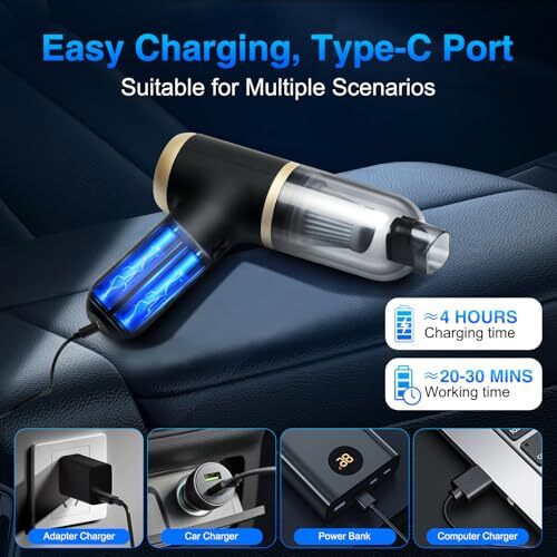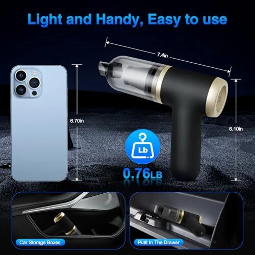 Return Policy Fast Delivery Trusted seller Handheld Vacuum Cordless Car Vacuum Portable with 20000PA, Lightweight Mini Hand Vacuum Cleaner with Brushless Motor, High Power Suction for Home, Pet and Car Product Description 20,000Pa Powerful Suction: Our car vacuum features the latest high-speed brushless motor. The suction power has been boosted by 50% to reach 20,000Pa, making it more effective in picking up stubborn sand, dust, and debris. 30-Minute Endurance with Dual Batteries: This cordless car vacuum utilizes an innovative dual-battery design to effectively eliminate range anxiety, providing an impressive runtime of up to 30 minutes. Convenient Type-C Fast Charging: This cordless portable car vacuum is equipped with a Type-C charging port and a built-in 4000mAh rechargeable battery. It takes only 4 hours to fully charge and can operate for 30 minutes, making it extremely convenient to charge this handheld vacuum in various settings. HEPA and Metal Dual Filtration System: This car vacuum is equipped with a two-layer filtration design. The HEPA filter excels at capturing very fine dust and impurities, making it highly effective for interior cleaning. The metal filter efficiently traps larger debris particles, protecting the cordless handheld vacuum from damage. The high-performance filter is easy to remove and can be reused after a simple rinse with water. Portable and Lightweight: The mini handheld vacuum cleaner is incredibly convenient with its light weight of only 0.75 pounds. Its cordless feature provides greater flexibility for cleaning tasks at home or in the car. The device's portability makes it perfect for travel and outdoor activities. After use, this handheld vacuum is easy to store in any compact space within your car or home, without occupying much room. Shipping Returns Payment Shipping Shipping is FREE to all addresses other than APO/PO boxes in the lower 48 states. All our stock ships from US-based warehouses. Shipped via USPS or UPS (depending on location and package weight) Unless stated otherwise, all orders will ship within 24-72 hours of your payment being processed. Check our feedback to see the great reviews of FAST shipping we offer. Returns Seller does not accept returns Payment We currently accept payment via eBay managed payments only. Once payment is cleared, we will dispatch your shipment within 1-3 business days. Please refer to the "Shipping" tab for more information regarding shipping speed to your destination.