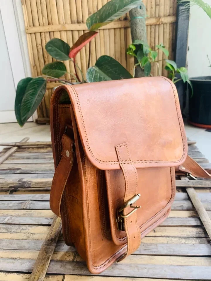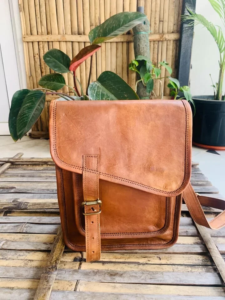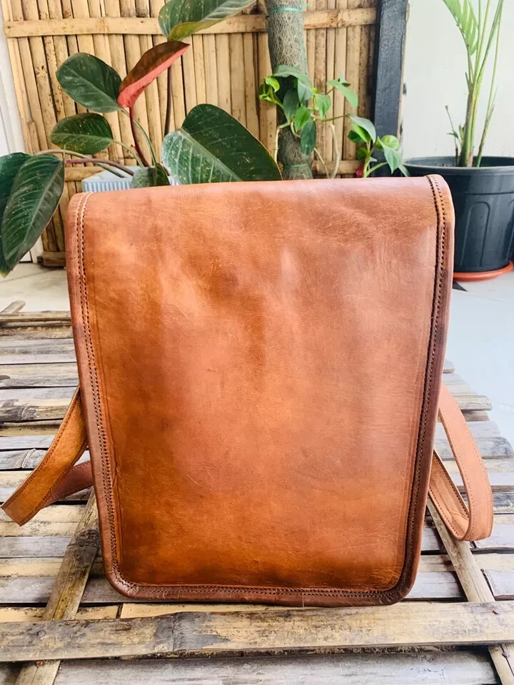Men's Leather Messenger Satchel Shoulder Briefcase Business Bag - Leather Bags welcome Best Product in Leather Bags Descriptions: 100% genuine goat leather messenger bag with a durable inner lining made of canvas. Designed to carry laptops, tab, documents or other personal belongings, etc. A genuine hand made product using Natural leather. Natural oils and light have been used to obtain the style of the leather - chemical free! This bag features a wonderful unique and vintage look, designed to carry mini laptops, tab, documents, personal belongings etc. Perfect for the office, school or as a gift! Specifications: Made from 100% genuine, strong, lightweight, durable goat leather, tanned without the use of chemicals Adjustable shoulder strap, half flap bag with strap lock & 2 small front pocket. big inner compartment for carrying files, mini laptop's, tab's etc. 2 zipper compartments for important documents/paperwork etc. Inner canvas lining Vintage leather wash Leather softens and darkens with use Handmade in India by experienced craftspeople Item Description:- Material- Real Goat hide ( sustained ) 2 Front pockets, handle on top. Total 5 compartments inside with green color strong canvas lining. 54" long adjustable shoulder broad strap. Real Brass metal accessories used in this Bag. Made by professional and experienced artisans from Rajasthan. Treated by natural ingredients. Natural leather smell will go away within few days from the usage of this bag. Eco friendly and weather resistant. RETURN POLICY Please provide your telephone number as well, so that the post office can contact you when your item arrives, or the item will be sent back to us. We will not be able to resend the item in that case so please make sure to provide your contact number. • In case of return of the goods, buyer has to borne the shipping charges. • Customs duties and other duties levies in destination country are responsibility of the customer. • We will exchange the item if returned to us within 14 days of original packing. • The item should not be used. • No alterations Must be Done to Item. Otherwise We won't take it Back • Buyer Must Inform within Two days after Getting the product about any Issues with the Item. TERMS & CONDITIONS Customers are require to provide full & accurate information at the time of order. No warranty. Dry cleaning only. We use standard shipping carriers for national & international shipping. Accessories & Stitching Pieces shown in the image are just for photography purpose. There may be color variation due to difference in resolution of the photo & the actual color. Please clarify all your doubts before buying. In case the item is out of stock your entire amount will be refunded via the same way the payment was made. Offer price is for per piece. About Us We manufacture ethically designed leather bags of great quality. The most important thing, these bags are not factory made, all of our bags are locally handcrafted in countries. We offers customized designing and wholesale prices for bulk order. We welcomes you to come and visit our manufacturing unit. For more details, please write to us. Feedback • Please do not leave a negative feedback as a way to communicate. Any rating given to a seller can neither be changed nor modified. So better communicate for faster resolution to any disputes. • If you have any concerns regarding your purchase, please contact us via phone or mail, we assure you that a satisfactory resolution will be reached. • Please help us maintain a 5 Star DSR rating in all 4 rating categories, if you feel otherwise, please let us know how we can score a perfect rating from you before you rate us.