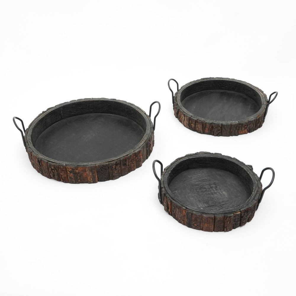 Handmade Round Mango Wood Decor & Serving Tray - Black Elevate your home decor and daily routines with this exquisitely crafted tray—where artisanal charm meets unbeatable functionality. Sourced from India, it’s made with sustainable mango wood, blending durability with a timeless aesthetic that complements rustic, modern, farmhouse, and transitional interiors seamlessly. Why This Tray Stands Out ✅ Handcrafted Quality: Meticulously made from eco-friendly mango wood, featuring natural grain and a smooth finish for a one-of-a-kind look. ✅ Stylish & Practical: 18-inch round design maximizes surface space, while sleek black metal handles add a modern touch and make carrying snacks, drinks, or essentials a breeze. ✅ Versatile Use: Perfect for serving guests, organizing dressers/countertops, or displaying candles, books, and decor—functional enough for daily use, beautiful enough to be a statement piece. ✅ Easy to Maintain: A smooth surface wipes clean with a damp cloth—no harsh cleaners required for long-lasting beauty. Key Details Assembled Dimensions: 18.00” L x 18.00” W x 5.50” H | Weight: 2.45 lbs Packaging Dimensions: 20.00” L x 20.00” W x 6.00” H | Shipping Weight: 2.95 lbs Material: Premium Sustainable Mango Wood | Color: Black Shop With Confidence ✅ 1-Year Manufacturer’s Warranty: We stand behind the quality of our handcrafted tray—coverage for defects in materials and craftsmanship. ✅ 30-Day Free Return Policy: Not completely satisfied? Send it back for a full refund, no questions asked. Whether you’re hosting a gathering, tidying up your space, or adding a decorative focal point, this mango wood tray is designed to enhance every moment—combining artisanal craftsmanship with everyday utility.