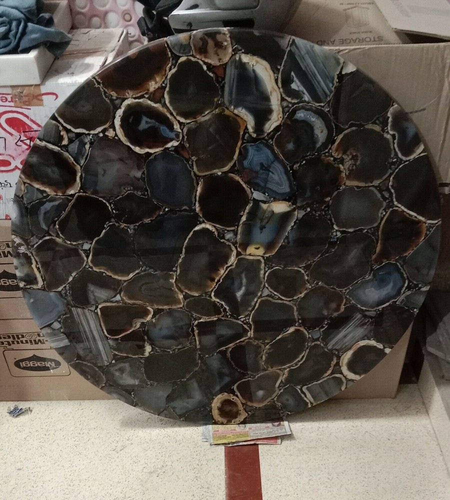 Welcome To Stone-Craft- Creations Shop Description Very unique Art by Indian Artist ,Coffee/Side Table top Used Material: Natural Agate Stones Arts Size: According to Size Variation Color: As Photo Shape: Round Pattern: Handmade Room: Bedroom, Dining Room, Hallway, Home Office/Study, Kid’s Bedroom, Kitchen, Laundry/Utility Room, Living Room,Patio, Playroom Packaging: Wood & Foam Export Packing Shipping: Air Can Be customize ,Please Message us your desired Size 1. It can be used as a Dining Table, Guest table, coffee table, center table top in show room as well as a gift for your loved ones. 2. The table top is made in Agra India & fully handmade. 3. The top will be delivered by FedEx or DHL free of cost door to door. 4. If there is any local tax,custom duties or Vat will be paid by the buyer at the destination. 5. The parcel is dispatch with proper packing & fully insured covering all kind of risk. 6. To maintain the table top is simple soap & water & dry cotton cloth. 7. If You Are Looking Something Customize, Let Us Know We Will Make For You As Per Your Design, Size & Shape. 8.Table top does not includes any wooden, marble stand or base if you like to buy marble or wooden base or stand that will be charged extra. Marble Agate Table Tops We are Manufacturer & Exporter of marble agate table tops. These marble agate table tops have different shapes like Round Table top, Octagonal Table Tops, Rectangle / Dining table tops, Square Table tops, Chess Table tops, Taj Mahal Table tops, Custom Designs Table tops also make marble Table top Base and Stand. Then we can be used as dining tables, coffee tables, Center tables, conference tables, chess boards, reading tables, bar tables , Garden table, side and corner tables or any other use as per the indoor and outdoor decor. They can also be placed outdoors in the garden, as marble is stain free, offers great resistance to the forces of nature, and can withstand heavy temperatures. We also meet customized requirement and offer our marble table tops at industry leading prices. About Agate Stone- Agate is a rock consisting primarily of cryptocrystalline silica, chiefly chalcedony, alternating with microgranular quartz. It is characterized by its fineness of grain and variety of color. Although agates may be found in various kinds of host rock, they are classically associated with volcanic rocks and can be common in certain metamorphic rocks. Ancient use of agate stone Agate is one of the most common materials used in the art of hardstone carving, and has been recovered at a number of ancient sites, indicating its widespread use in the ancient world; for example, archaeological recovery at the Knossos site on Crete illustrates its role in Bronze Age Minoan culture Types Of Agate 1. Fortification Agate This is the most common and distinctive type of agate. In these agates, bands crystallized into concentric layers that more or less follow the shape of the cavity. The banding resembles an aerial view of a fort 2. Water-Line Agate (also called water-level or onyx) During its formation, silica-rich solution either entered the cavity slowly laying one band at a time, excess water drained out leaving a small amount of silica to settle out into separate bands, or the vesicle filled under low pressure. In any case, the silica crystallization in water-level agates is controlled by gravity in one orientation, forming a stack up of parallel bands. 3. Shadow Agate Some agates exhibit a shadow effect in which there is what appears to be movement across the agate layers when the specimen is rocked back and forth (or your orientation to the specimen moves). This optical effect only occurs when there are alternating translucent and opaque bands. It is caused when light goes into the agate, but is not reflected out. 4. Tube Agate Tube Agate During the formation of some agates, parallel projections of tiny hair-thin mineral rods grow first within the silica gel, around which later the chalcedony agate micro-crystals form. In some cases the inclusions remain, but sometimes they weather away leaving hollow tubes that subsequently fill in with silica. 5. Eye Agates This mysterious agate characteristic is believed to be formed when most of the silica gel drains from the cavity, leaving only a droplet that “beads up” on the inside wall of the cavity. This droplet crystallizes into solid chalcedony “eyes”. In some cases, crystal growth will continue from this droplet in a manner similar to the formation of stalactites in caves. Later, the pocket fills in with the usual deposition of chalcedony microcrystals. 6. Plume Agate These agates initially had formations on their outside layer that formed prior to the deposition of chalcedony bands. They are filament growths of mineral inclusions that resemble ferns or feathers. 7. Geode Agate Geode Agate In some cases the supply of silica-rich water runs out before the entire cavity fills in. When there is a hollow center within a crystalline outer fill, the specimen is considered a geode. Not all geodes have agate banding, but many do. Also, the inner layers can form into several different types of silica mineral crystals and may even have other types of mineral crystals. 8. Moss Agate Moss Agate Moss agates have clusters of mineral inclusions that resemble plants, trees, or landscapes. Most moss agate inclusions are comprised of iron or manganese oxide. In some cases, the inclusions inhibit chalcedony banding allowing the mineral clusters free reign to grow within the silica gel. 9. Seam Agate Seam agates for in cracks within host rock, rather than in rounder pockets. The bands form in parallel rows that follow and fill in the crack or seam.