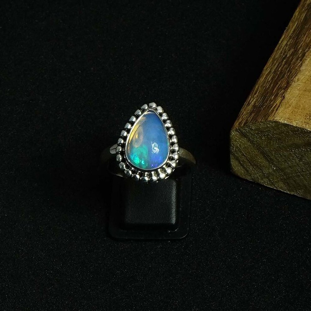 Description Natural Ethiopian Opal Gemstone Ring Handmade 925 Silver - Unique Gift for Her This exquisite Natural Ethiopian Opal Gemstone Ring is the perfect blend of elegance, craftsmanship, and vibrant color, designed to make a statement. Handcrafted with care by skilled artisans, this stunning ring features a high-quality Ethiopian Opal set in a solid 925 sterling silver band, making it a beautiful and timeless piece that will be cherished for years to come. Whether you're looking for a special gift for someone dear or want to treat yourself, this ring is an ideal choice. Key Features: Genuine Ethiopian Opal: This ring showcases a captivating Ethiopian opal, renowned for its vibrant play of color, often displaying a mesmerizing blend of fiery reds, blues, greens, and purples. Each opal is one-of-a-kind, ensuring that no two stones are exactly alike. The natural opal stone is ethically sourced and carefully selected for its exceptional beauty and unique characteristics. Handmade Craftsmanship: Every ring is meticulously handmade by expert artisans who bring years of experience to their craft. The level of attention to detail and the dedication to creating high-quality jewelry is evident in every aspect of this ring. The stone is securely set in the band, and the silverwork around the opal is elegantly designed to enhance its natural beauty. Premium 925 Sterling Silver: The band is made from durable and hypoallergenic 925 sterling silver, ensuring a long-lasting and comfortable wear. Sterling silver is a popular choice in jewelry for its lustrous shine and resistance to tarnishing, making this ring not only an eye-catching piece but also one that will stand the test of time. The silver band features a smooth, polished finish for a sophisticated look that complements the radiant colors of the Ethiopian opal. Versatile Design: The design of this ring is both contemporary and timeless, making it suitable for various occasions. Whether it's a birthday, anniversary, engagement, or just a thoughtful gesture to show someone how much they mean to you, this ring is a versatile and elegant gift. It pairs effortlessly with casual or formal attire, adding a touch of elegance to any outfit. Perfect Gift for Her: If you're looking for a unique and meaningful gift for the special woman in your life, this Ethiopian Opal ring is an excellent choice. The opal’s colorful display is said to symbolize passion, love, and creativity, making it a symbol of personal significance for the wearer. Whether it’s for a loved one, a friend, or a family member, this ring is sure to be appreciated for its beauty and symbolic meaning. Unique and One-of-a-Kind: Ethiopian opals are prized for their rare and vibrant appearance, making this ring a truly exceptional piece. The unique play of color in each opal means that no two rings are exactly the same. Your ring will be a true reflection of the natural wonder that Ethiopian opals are known for. Why Choose This Ring? Handcrafted Excellence: This ring is made by skilled artisans, ensuring a product that is not only beautiful but also well-crafted and durable. Each ring is inspected for quality before it reaches you, ensuring satisfaction with every purchase. Ethically Sourced Materials: The opals used in this ring are ethically sourced, making it a sustainable choice. The 925 sterling silver band is also sourced responsibly, giving you peace of mind knowing you're purchasing a product that aligns with your values. Timeless Elegance: Opals are timeless gemstones, and their vibrant colors make them an enduring choice in jewelry. This ring is designed to be worn daily or saved for special occasions, becoming a piece that will be treasured for a lifetime. Gift-Ready Packaging: This stunning ring comes beautifully packaged, making it ready for gifting. Whether it’s a birthday, anniversary, or any other special event, you can feel confident presenting this ring as a thoughtful and meaningful gift. Sizing Information: This ring is available in a variety of sizes to ensure a perfect fit. Please refer to the sizing chart provided in the images for accurate measurements. If you're unsure about your ring size, feel free to reach out, and we'll be happy to assist you in choosing the right size. Care Instructions: To keep your opal ring looking its best, we recommend avoiding prolonged exposure to harsh chemicals or extreme temperatures. Gently clean the silver band with a soft cloth to maintain its shine, and store the ring in a jewelry box or pouch to protect it from scratches. Conclusion: The Natural Ethiopian Opal Gemstone Ring Handmade 925 Silver is not just a piece of jewelry, but a work of art that brings beauty, color, and meaning to the wearer. Its combination of vibrant opal and high-quality silver makes it a stunning accessory that will elevate any look. Whether you're buying it as a gift or for yourself, this ring is a must-have for those who appreciate the unique beauty of opals and the artistry of handmade jewelry. Don't miss the opportunity to own or gift this extraordinary piece today!