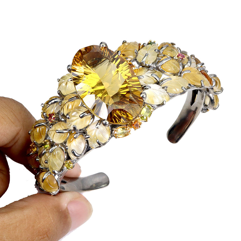 925 Sterling Silver Bangle Citrine 37ct Tourmaline Handmade Gemstone jewelry PRODUCT ID BG2404010081 PRODUCT TYPE Bangle TYPE OF METAL 925 Sterling Silver PLATE Black Rhodium Ring size/Length (inches) MAIN STONE Citrine OTHER GEMS Tourmaline TOTAL weight 62.74 gram (total weight of silver + stone) DIMENSION * STONE 2.5 TO 31.0 X 19.0 MM. * DIAMETER 1.9 X 1.8 INCHES. * FACE BANGLE 63.0 X 33.0 MM. MAIN STONE SHAPE Oval Concave Cut MAIN STONE COLOR Yellow CLARITY/GRADE If LUSTER Precious TREATMENT Unheated ORIGIN Brazil HARDNESS 7 IF very high quality & Free from inclushions. VVS high quality with very slight inclushions. SI1 Good Quality with slight inclusions visible to the naked eye. SI2 include becoming prominent to the eye. I included. "Delivering excellent with eBay" we accept: PayPal payment which we prefer. FOR US BUYER >>>> PLEASE READ We are genuine seller from THAILAND. All products are originally 100% manufactured in THAILAND. Every items are 100% exported directly from THAILAND. However, we use shipping provider 'Webgistix' who is a US distributor. The items will be allocated from Webgistix's distribution office in Las Vegas, NV by USPS. Please understand that the tracking status will show starting from Las Vegas when you track the items. Feel free to ask for more details. We ship item(s) from Thailand to Worldwide in 24 hr. ( in working day ) after the payment was cleared. $10 - flat rate for a registered airmail, takes 20 - 40 days delivery. Thailand Post stops the service to Latvia, Lithuania, Malta, Moldova, Estonia, Georgia and Israel. Fedex cost up on destination with insure and online tracking. Destinations Asia NORTH AMERICA, CANADA EUROPE (WEST) EUROPE (EAST), SCANDINAVIA, MIDDLE EAST SOUTH AMERICA, AFRICA FEDEX EXPRESS (minimum) $70 $70 $70 $80 $80 Fedex rate will be charged by weight and destination area. A combine package is limited at 10 items within 10 days. Do not send your payment directly, just contact us to request total when you finish bidding (ebay cannot automatic combine items). Any single item weigh over 300ct is not eligible to combine. Buy over US $999 in one payment (10 items within 10days), Get Free FedEx shipment. TAX/CUSTOM: Custom fee is out of seller control. Buyer is responsible for the cost at arrived. Please give us an opportunity when you have questions with item received. Buyer can make agreement on discount or return the shipping in case of damage item. Seller is located in Thailand. So please contact seller for the instruction before return any item. Your communication is most important to solve the problem. International buyers note: Import duties, taxes, and charges are not included in the item price. These charges are the buyer's responsibility. Please check with your country's customs office to determine what these additional costs will be prior to bidding/buying.