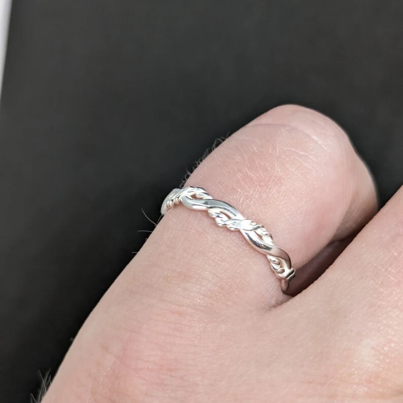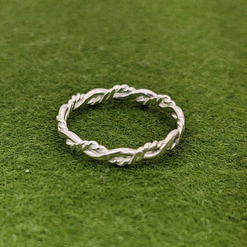 This beautifully handcrafted sterling silver rope ring combines the elegance of smooth, plain silver with the texture of a twisted, braided design. Each ring is individually crafted by skilled artisans, ensuring a unique, high-quality piece that adds a touch of timeless sophistication to any outfit. Key Features: Material: Made from authentic sterling silver , known for its durability and shine. Design: The ring features a twisted rope design , with alternating smooth and textured areas that create a beautiful contrast. Handmade Craftsmanship: Each ring is handmade , giving it a unique, one-of-a-kind feel. Adjustable Fit: This ring is designed to fit comfortably on a range of finger sizes. Perfect for gifting or as a personal treat. Versatile Style: The elegant design makes it suitable for both casual and formal wear, adding a touch of charm to any outfit. Perfect Gift: Whether you're looking for a special gift for a loved one or a new addition to your jewelry collection, this sterling silver rope ring is sure to impress.