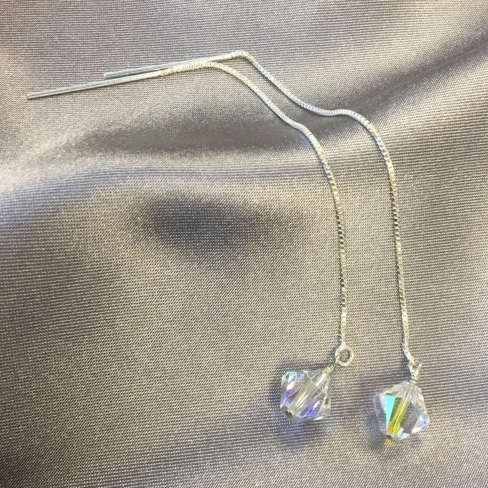 Handmade 925 Sterling Silver Threader Drop Earrings with Bicone Austrian Crystals Product Details Color: Clear Brand: Gem Avenue MPN: scer024 UPC: Does not apply EAN: Does not apply Is Discontinued By Manufacturer : No Product Dimensions : 11.3 x 8.9 x 1.1 inches; 0.39 ounces Item model number : scer024 Department : womens Date First Available : August 10, 2006 Manufacturer : Gem Avenue Brand, Seller, or Collection Name: Gem Avenue Metal: Sterling Silver Gem Type: Crystal Item Length: 11.3 inches Height: 50 millimeters Length: 2 inches Model number: scer024 These bicone shape handmade crystal earrings are a sure must have with any outfit! Dress them up or dress them down, they do it all! These 925 sterling silver earrings are composed of 100% Austrian crystals. Step into the light and watch how they sparkle and shine! The vibrant crystal dangles from a silver box chain string that is approximately 4 inches long, from top to bottom. Here at Gem Avenue, we are sure you will not be left disappointed with your purchase of these gorgeous earrings! ?